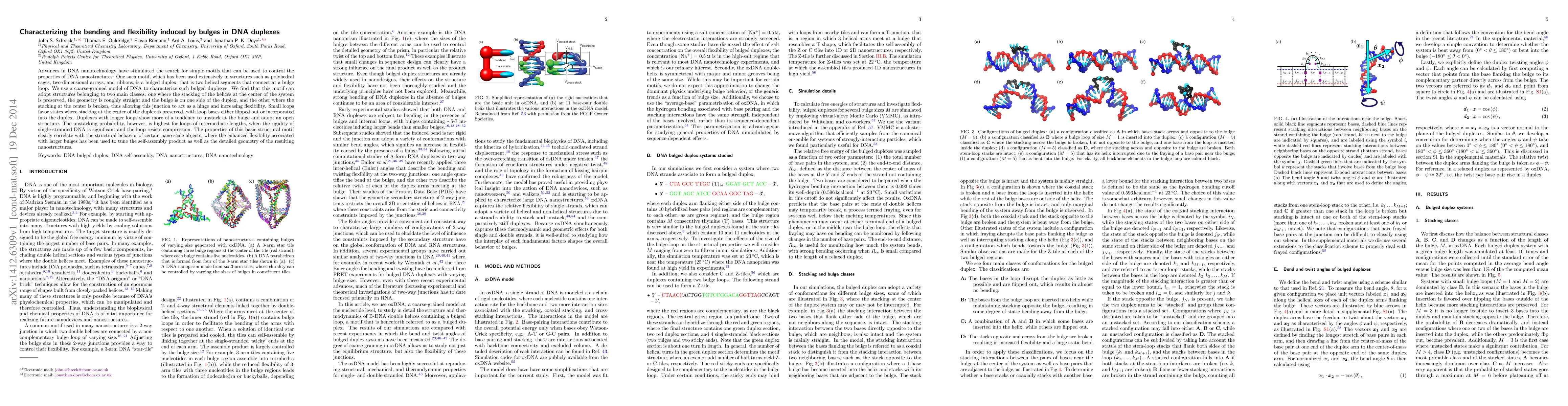 Researchers characterized bulged DNA duplexes using a coarse-grained model, finding that they can adopt two main structures: one with preserved stacking at the center and another allowing for increased flexibility due to a hinge-like junction.