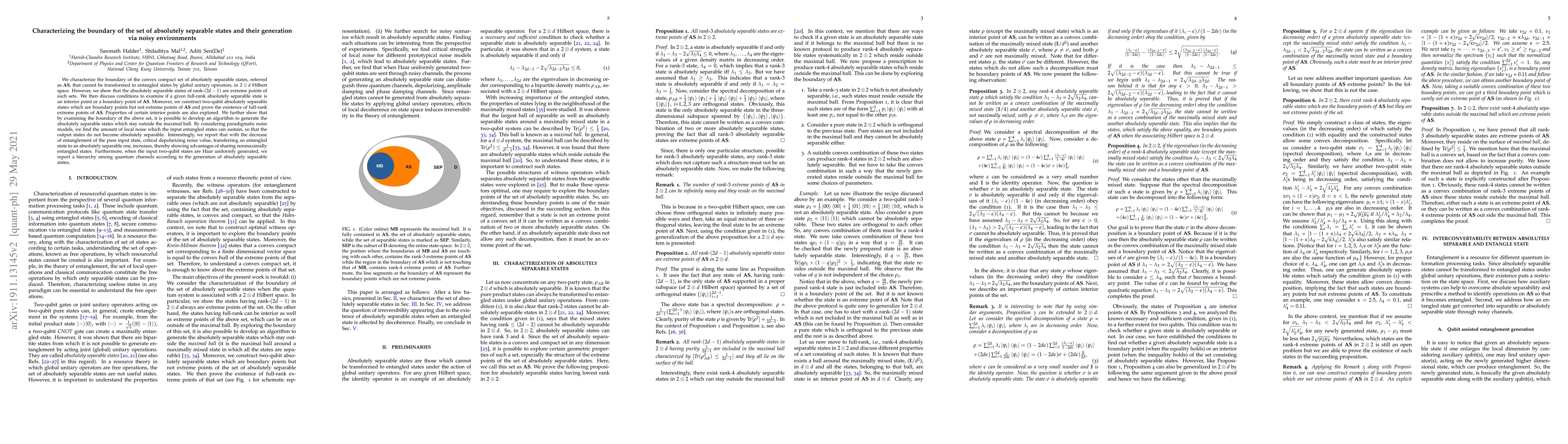 We characterize the boundary of the convex compact set of absolutely separable states, referred as {\bf AS}, that cannot be transformed to entangled states by global unitary operators, in $2\otimes d$ Hilbert space. However, we show that the absolutely separable states of rank-$(2d-1)$ are extreme points of such sets. We then discuss conditions to examine if a given full-rank absolutely separable state is an interior point or a boundary point of {\bf AS}. Moreover, we construct two-qubit absolutely separable states which are boundary points but not extreme points of {\bf AS} and prove the existence of full-rank extreme points of {\bf AS}. Properties of certain interior points are also explored. We further show that by examining the boundary of the above set, it is possible to develop an algorithm to generate the absolutely separable states which stay outside the maximal ball. By considering paradigmatic noise models, we find the amount of local noise which the input entangled states can sustain, so that the output states do not become absolutely separable. Interestingly, we report that with the decrease of entanglement of the pure input state, critical depolarizing noise value, transferring an entangled state to an absolutely separable one, increases, thereby showing advantages of sharing nonmaximally entangled states. Furthermore, when the input two-qubit states are Haar uniformly generated, we report a hierarchy among quantum channels according to the generation of absolutely separable states.