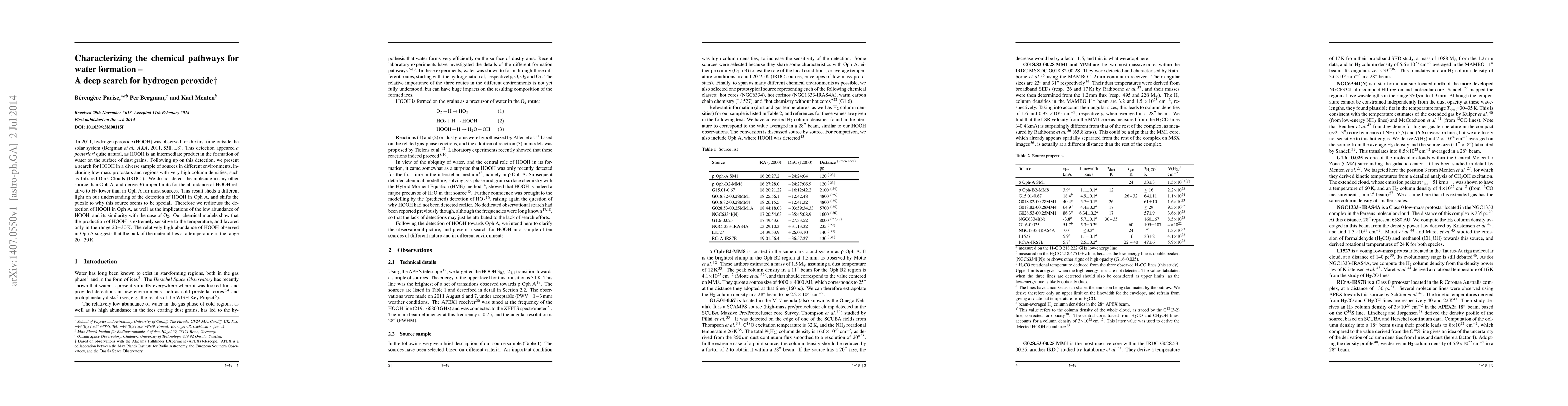 In 2011, hydrogen peroxide (HOOH) was observed for the first time outside the solar system (Bergman et al., A&A, 2011, 531, L8). This detection appeared a posteriori quite natural, as HOOH is an intermediate product in the formation of water on the surface of dust grains. Following up on this detection, we present a search for HOOH in a diverse sample of sources in different environments, including low-mass protostars and regions with very high column densities, such as Infrared Dark Clouds (IRDCs). We do not detect the molecule in any other source than Oph A, and derive 3$\sigma$ upper limits for the abundance of HOOH relative to H$_2$ lower than in Oph A for most sources. This result sheds a different light on our understanding of the detection of HOOH in Oph A, and shifts the puzzle to why this source seems to be special. Therefore we rediscuss the detection of HOOH in Oph A, as well as the implications of the low abundance of HOOH, and its similarity with the case of O$_2$. Our chemical models show that the production of HOOH is extremely sensitive to the temperature, and favored only in the range 20$-$30 K. The relatively high abundance of HOOH observed in Oph A suggests that the bulk of the material lies at a temperature in the range 20$-$30 K.