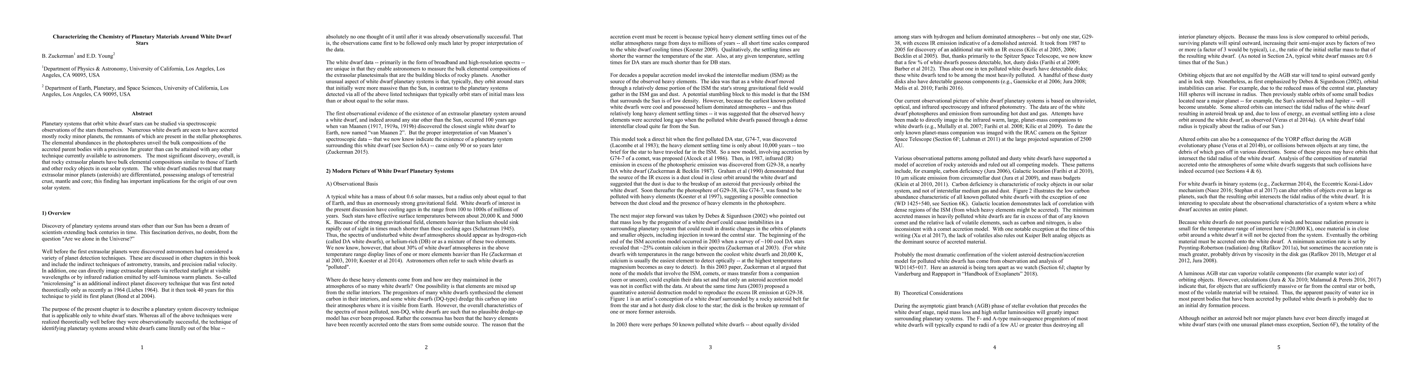 This research characterizes the chemistry of planetary materials around white dwarf stars through spectroscopic observations, revealing that accreted rocky minor planets have elemental compositions similar to Earth's and possess differentiated structures akin to terrestrial crust, mantle, and core. These findings provide significant insights into the origins of our own solar system.
