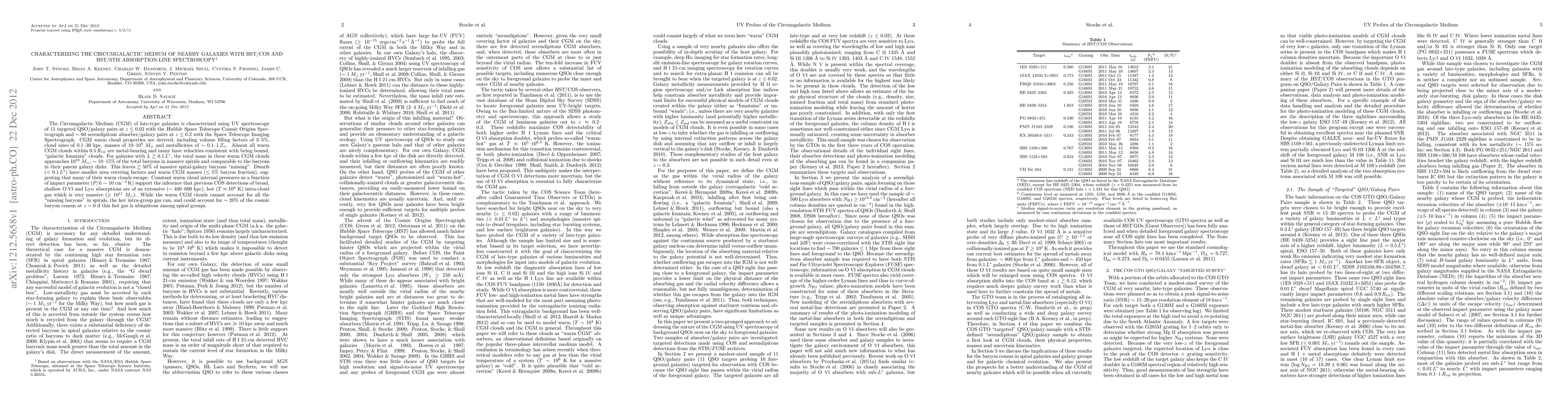 This paper characterizes the Circumgalactic Medium (CGM) of nearby galaxies using UV spectroscopy from HST/COS and HST/STIS, finding that warm CGM clouds have properties such as 3-5% volume filling factors and masses of 10-1e8 solar masses. The study suggests that while CGM clouds contribute significantly to baryonic mass, they do not account for all "missing baryons," which may reside in hot intra-group gas.