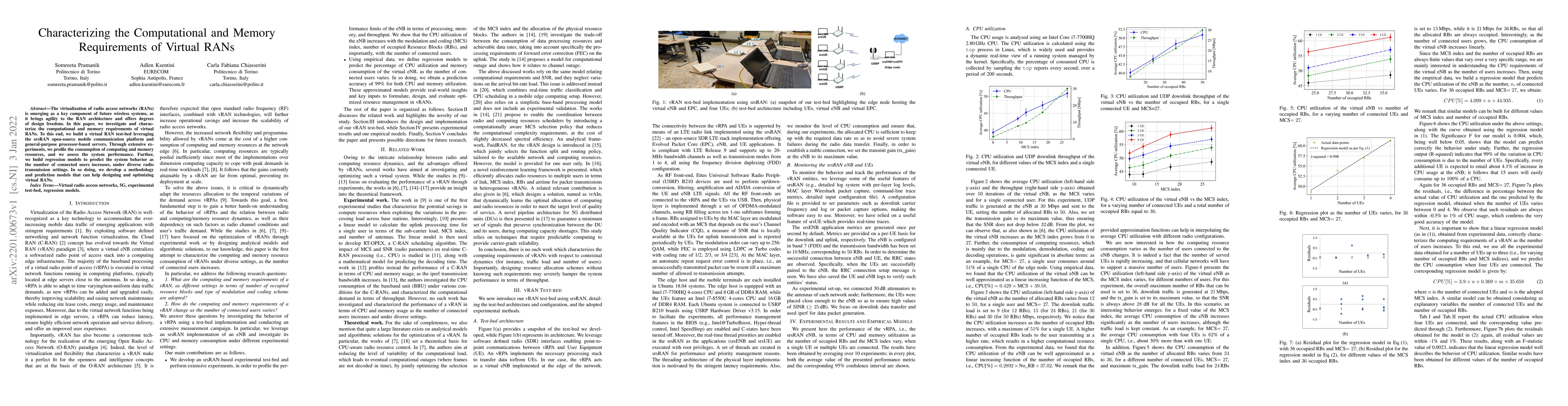 Researchers investigated the computational and memory requirements of virtual RANs through experiments and regression models, developing a methodology for designing and optimizing these systems. They built a test-bed using an open-source platform to profile resource consumption and predict system behavior.