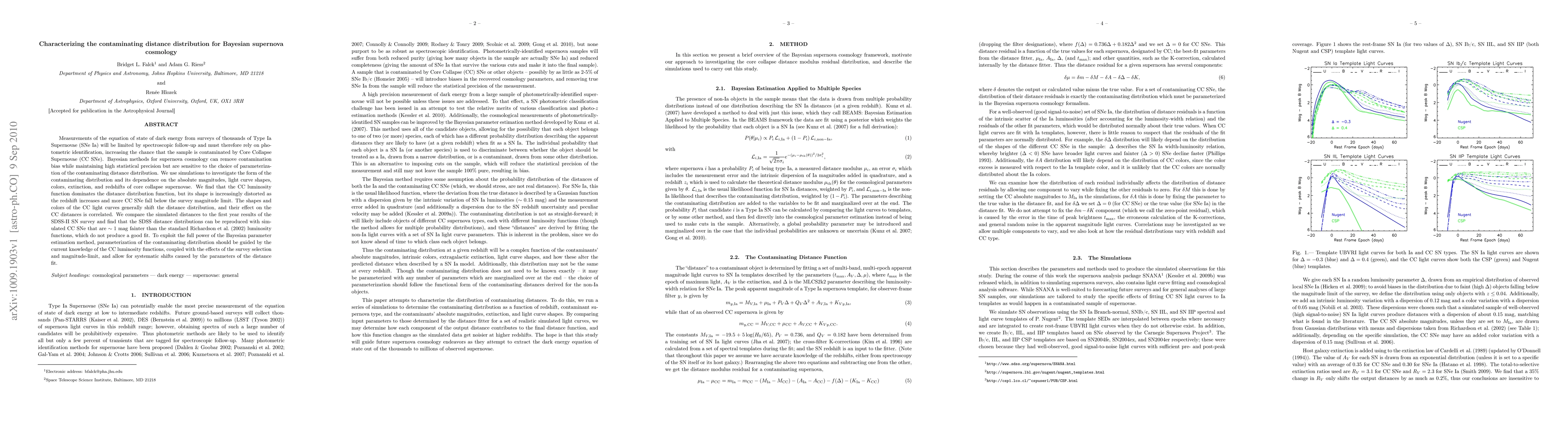 Measurements of the equation of state of dark energy from surveys of thousands of Type Ia Supernovae (SNe Ia) will be limited by spectroscopic follow-up and must therefore rely on photometric identification, increasing the chance that the sample is contaminated by Core Collapse Supernovae (CC SNe). Bayesian methods for supernova cosmology can remove contamination bias while maintaining high statistical precision but are sensitive to the choice of parameterization of the contaminating distance distribution. We use simulations to investigate the form of the contaminating distribution and its dependence on the absolute magnitudes, light curve shapes, colors, extinction, and redshifts of core collapse supernovae. We find that the CC luminosity function dominates the distance distribution function, but its shape is increasingly distorted as the redshift increases and more CC SNe fall below the survey magnitude limit. The shapes and colors of the CC light curves generally shift the distance distribution, and their effect on the CC distances is correlated. We compare the simulated distances to the first year results of the SDSS-II SN survey and find that the SDSS distance distributions can be reproduced with simulated CC SNe that are ~1 mag fainter than the standard Richardson et al. (2002) luminosity functions, which do not produce a good fit. To exploit the full power of the Bayesian parameter estimation method, parameterization of the contaminating distribution should be guided by the current knowledge of the CC luminosity functions, coupled with the effects of the survey selection and magnitude-limit, and allow for systematic shifts caused by the parameters of the distance fit.