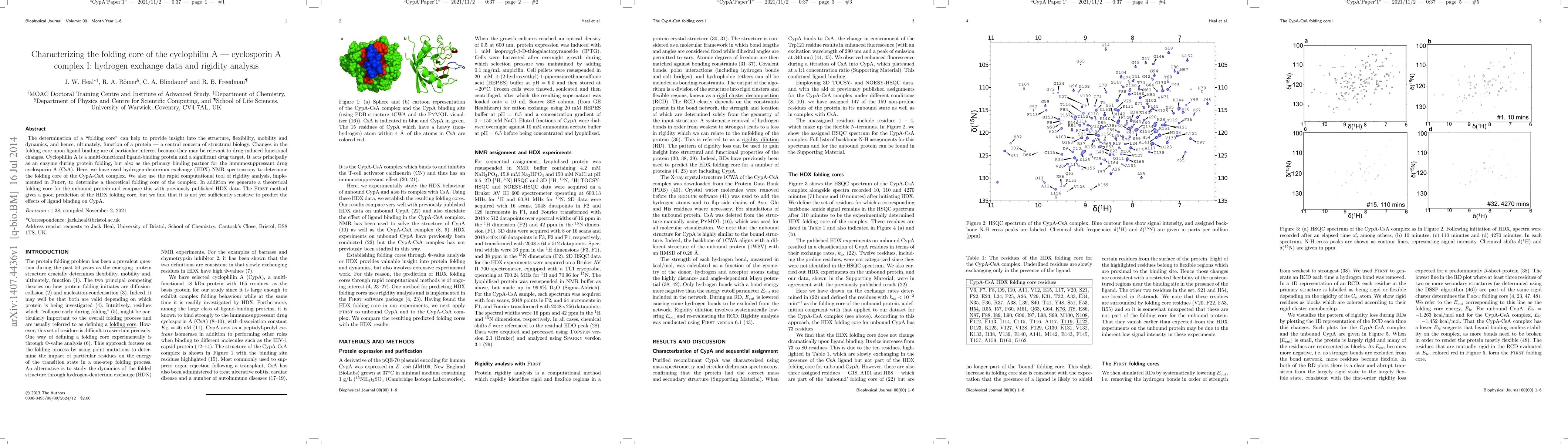 The study demonstrates the use of HDX NMR spectroscopy and FIRST rigidity analysis for characterizing the folding core of the CypA-CsA complex, providing a detailed comparison between experimental and theoretical folding cores.