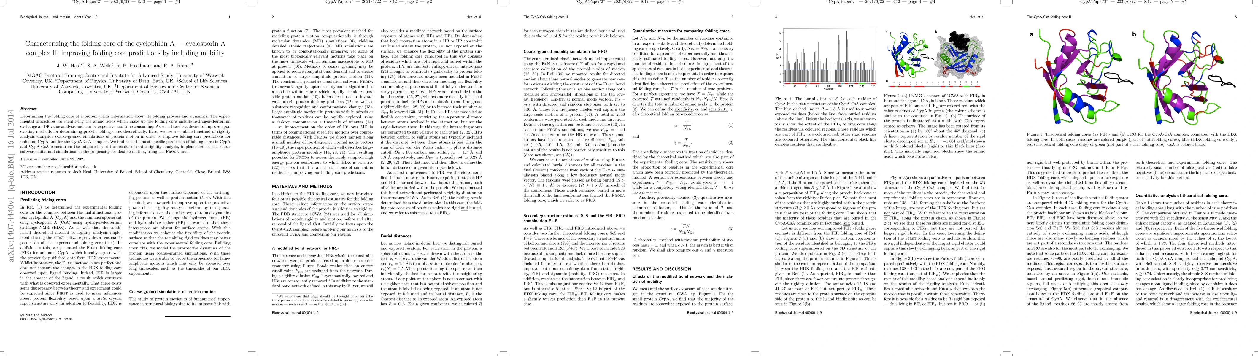 The paper introduces a combined computational method that integrates rigidity-based folding core prediction (FIRST) with dynamic motion analysis (FRODA), leading to improved folding core predictions for CypA and CypA-CsA complex.