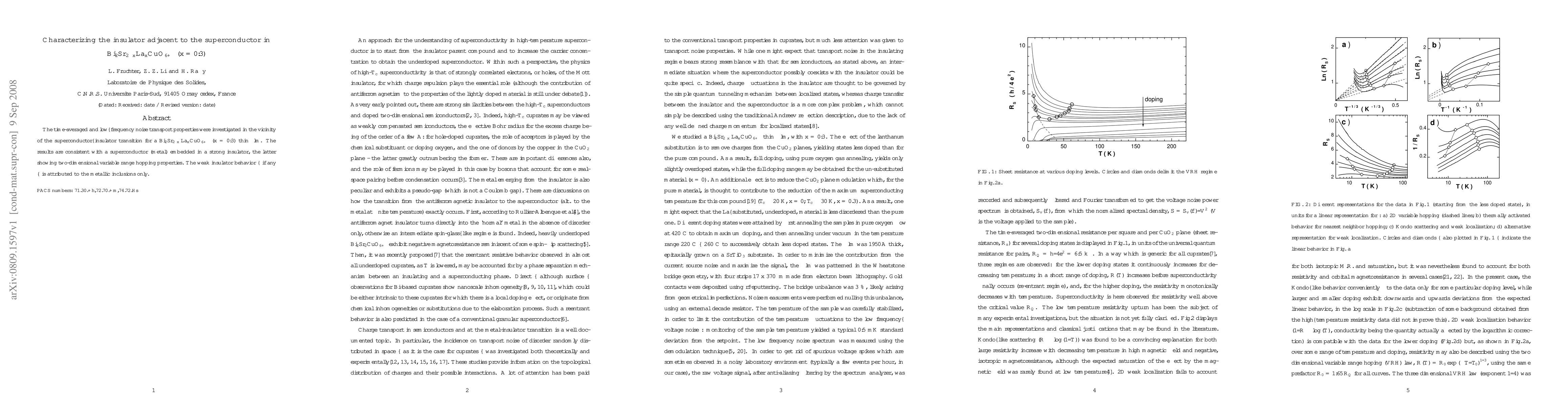 The time-averaged and low--frequency noise transport properties were investigated in the vicinity of the superconductor--insulator transition for a Bi$_2$Sr$_{2-x}$La$_{x}$CuO$_{6+\delta}$ ($x=0.3$) thin film. The results are consistent with a superconductor (metal) embedded in a strong insulator, the latter showing two-dimensional variable range hopping properties. The weak insulator behavior -- if any -- is attributed to the metallic inclusions only.