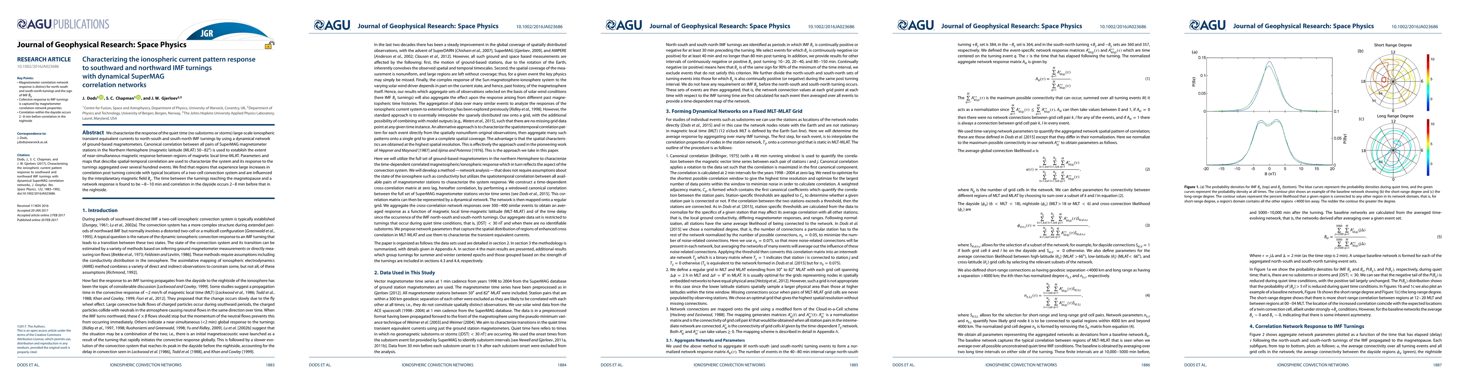 This study investigates how the Earth's ionosphere responds to changes in the magnetic field caused by solar wind turnings. It finds that certain regions of the ionosphere exhibit a strong response to these changes, with correlations occurring within 8-10 minutes.