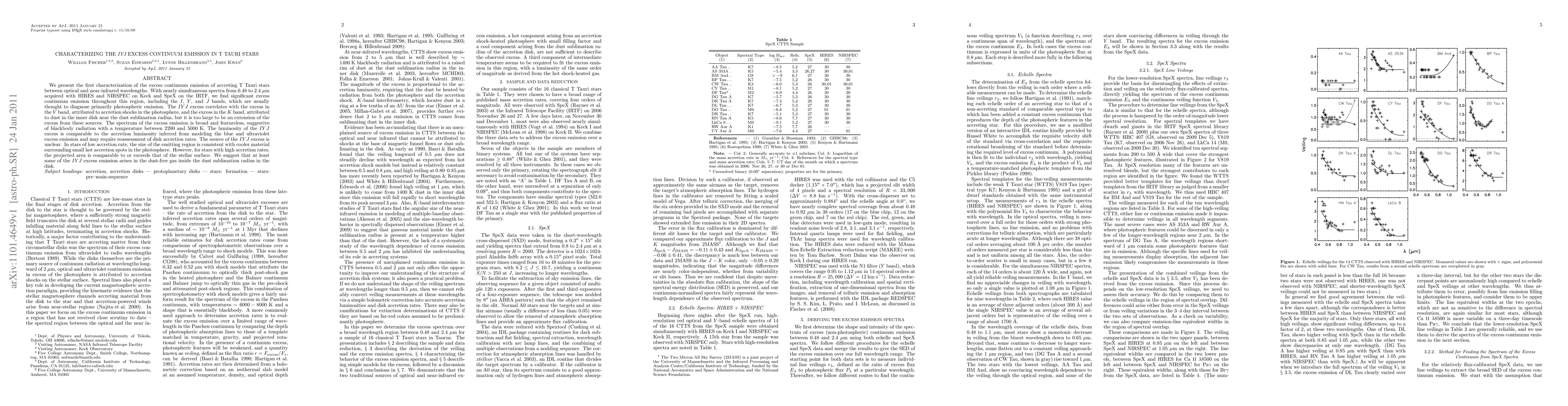 This paper characterizes the excess continuum emission in accreting T Tauri stars between optical and near-infrared wavelengths, revealing significant IYJ band excess not attributable to photospheric or accretion shock sources. The excess emission suggests a blackbody temperature range of 2200-5000 K and may indicate new regions of emission within the disk, potentially reevaluating disk accretion rates.