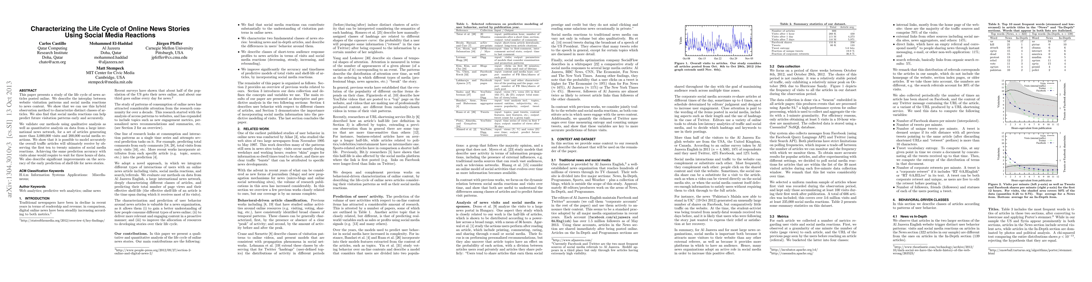 This study characterizes the life cycle of online news articles by analyzing website visitation patterns and social media reactions, demonstrating that early social media engagement can accurately predict future traffic and news article longevity. The research validates these findings using extensive data from a large international news network.
