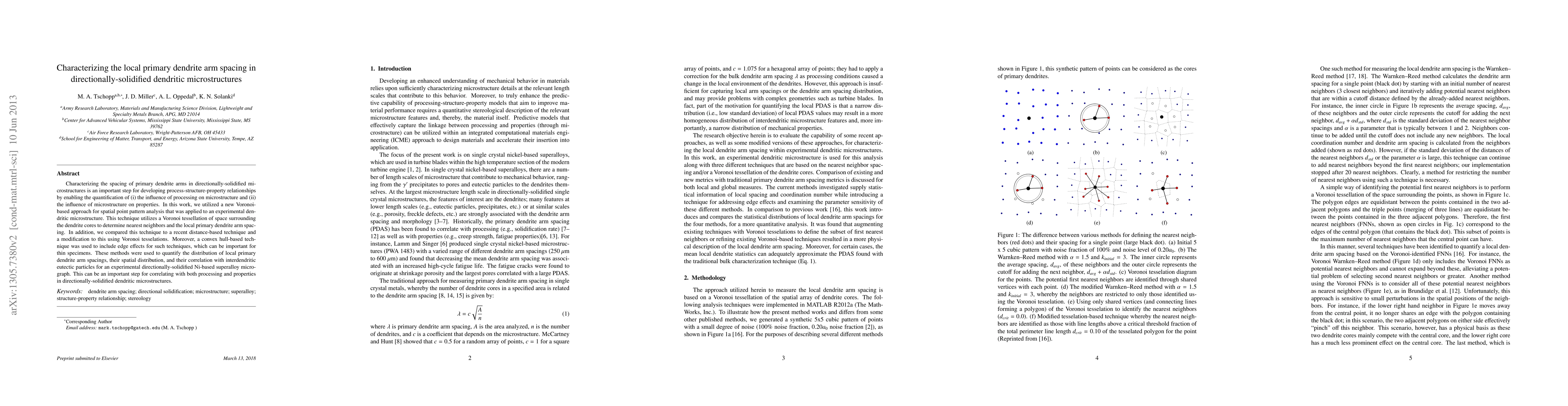 This paper introduces a Voronoi-based approach for analyzing the local primary dendrite arm spacing in directionally-solidified microstructures, comparing it with distance-based techniques and including edge effects via convex hull methods. The goal is to quantify the influence of processing on microstructure and its correlation with properties in a Ni-based superalloy.