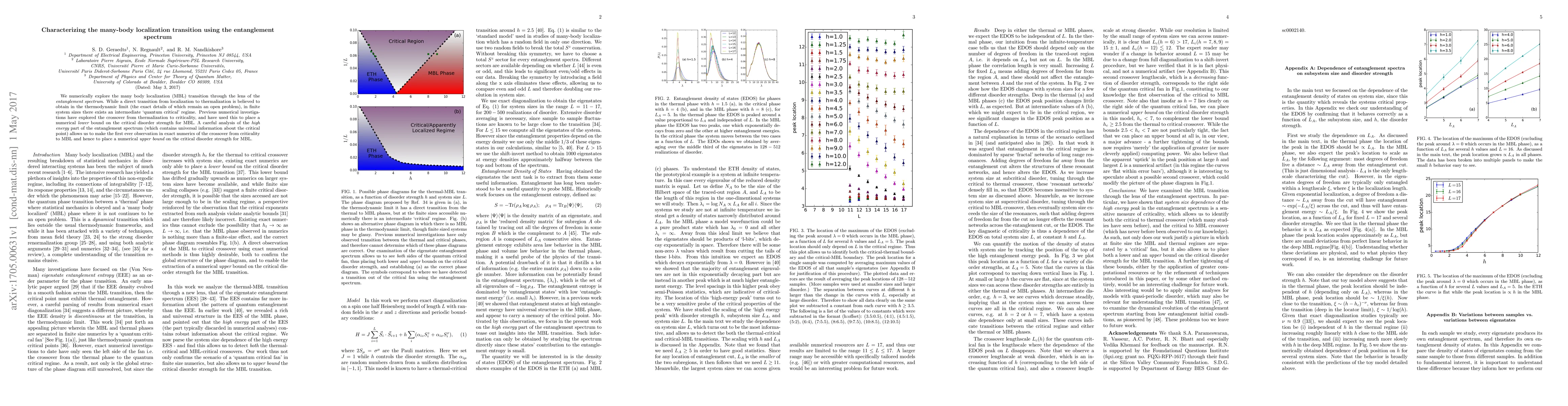 This paper numerically investigates the many-body localization (MBL) transition by analyzing the entanglement spectrum, revealing a crossover from criticality to MBL in finite systems and establishing a numerical upper bound on the critical disorder strength for MBL.