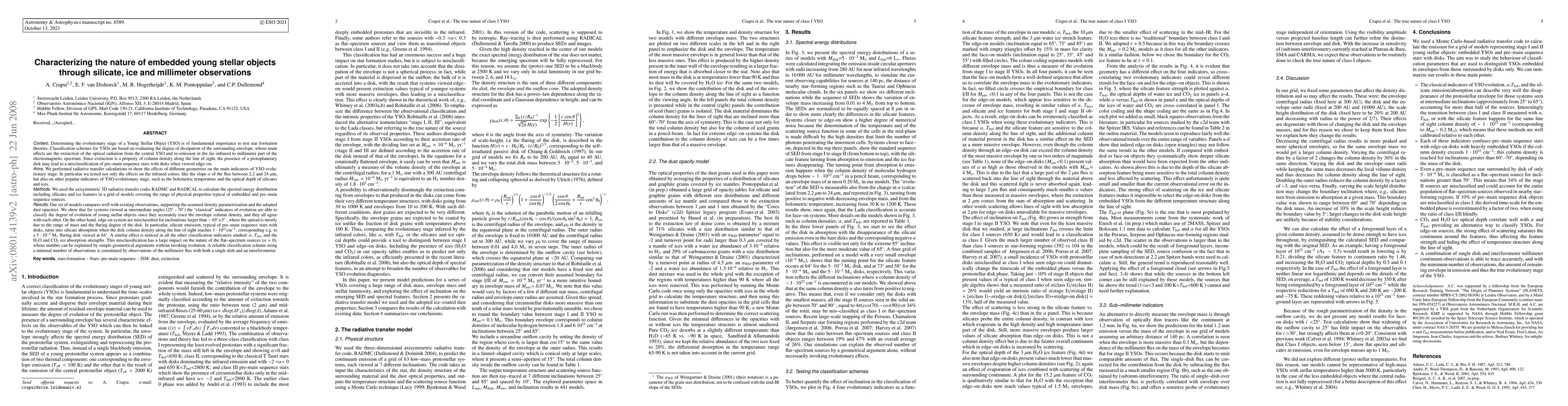 (Abridged) Classification schemes for YSOs are based on evaluating the degree of dissipation of the surrounding envelope, whose main effects are the extinction of the optical radiation from the central YSO and re-emission in the far-infrared. Since extinction is a property of column density along the line of sight, the presence of a protoplanetary disk may lead to a misclassification when the system is viewed edge-on. We performed radiative transfer calculations, using the axysimmetric 3D radiative transfer codes RADMC and RADICAL, to show the effects of different geometries on the main indicators of YSO evolutionary stage, like the slope of the flux between 2 and 24mum, the bolometric temperature and the optical depth of silicates and ices. We show that for systems viewed at intermediate angles the 'classical' indicators of evolution accurately trace the envelope column density, and they all agree with each other. On the other hand, edge-on system are misclassified for inclinations larger than ~65deg. In particular, silicate emission, typical of pre-main sequence stars with disks, turns into absorption when the disk column density reaches 1e22cm-2, corresponding e.g. to a 5e-3 Msun flaring disk viewed at 64deg. A similar effect is noticed in all the other classification indicators studied alpha, Tbol, and the H2O and CO2 ices absorption strengths. This misclassification has a big impact on the nature of the flat-spectrum sources (alpha ~0), whose number can be explained by simple geometrical arguments without invoking evolution. A reliable classification scheme using a minimal number of observations is constituted by observations of the mm-flux with both a single dish and an interferometer.