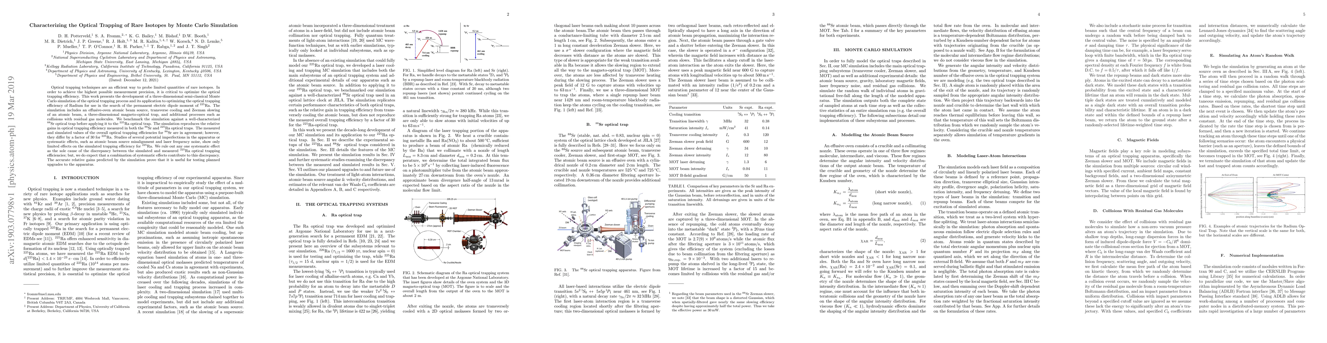 Optical trapping techniques are an efficient way to probe limited quantities of rare isotopes. In order to achieve the highest possible measurement precision, it is critical to optimize the optical trapping efficiency. This work presents the development of a three-dimensional semi-classical Monte Carlo simulation of the optical trapping process and its application to optimizing the optical trapping efficiency of Radium for use in the search of the permanent electric dipole moment of $^{225}$Ra. The simulation includes an effusive-oven atomic beam source, transverse cooling and Zeeman slowing of an atomic beam, a three-dimensional magneto-optical trap, and additional processes such as collisions with residual gas molecules. We benchmark the simulation against a well-characterized $^{88}$Sr optical trap before applying it to the $^{225}$Ra optical trap. The simulation reproduces the relative gains in optical trapping efficiency measured in both the $^{88}$Sr and $^{225}$Ra optical traps. The measured and simulated values of the overall optical trapping efficiencies for $^{88}$Sr are in agreement; however, they differ by a factor of $30$ for $^{225}$Ra. Studies of several potential imperfections in the apparatus or systematic effects, such as atomic beam source misalignment and laser frequency noise, show only limited effects on the simulated trapping efficiency for $^{225}$Ra. We rule out any one systematic effect as the sole cause of the discrepancy between the simulated and measured $^{225}$Ra optical trapping efficiencies; but, we do expect that a combination of systematic effects contribute to this discrepancy. The accurate relative gains predicted by the simulation prove that it is useful for testing planned upgrades to the apparatus.