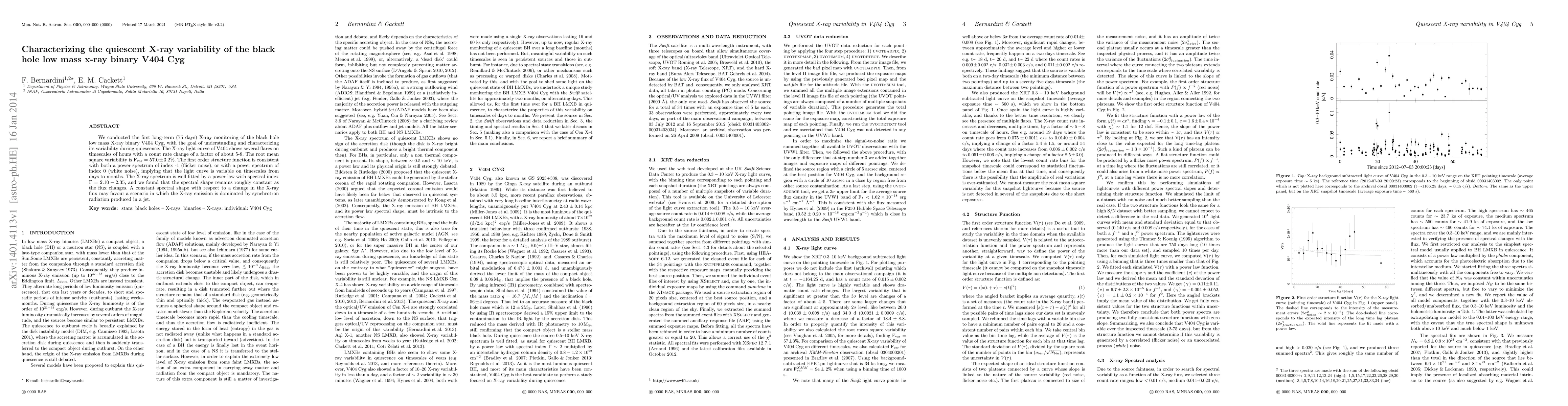 This study characterizes the quiescent X-ray variability of V404 Cyg, revealing flares with a factor of 5-8 change in count rate and a root mean square variability of 57.0(3.2) percent. The variability suggests flicker or white noise on timescales from days to months, with a constant spectral shape indicating synchrotron radiation from a jet.