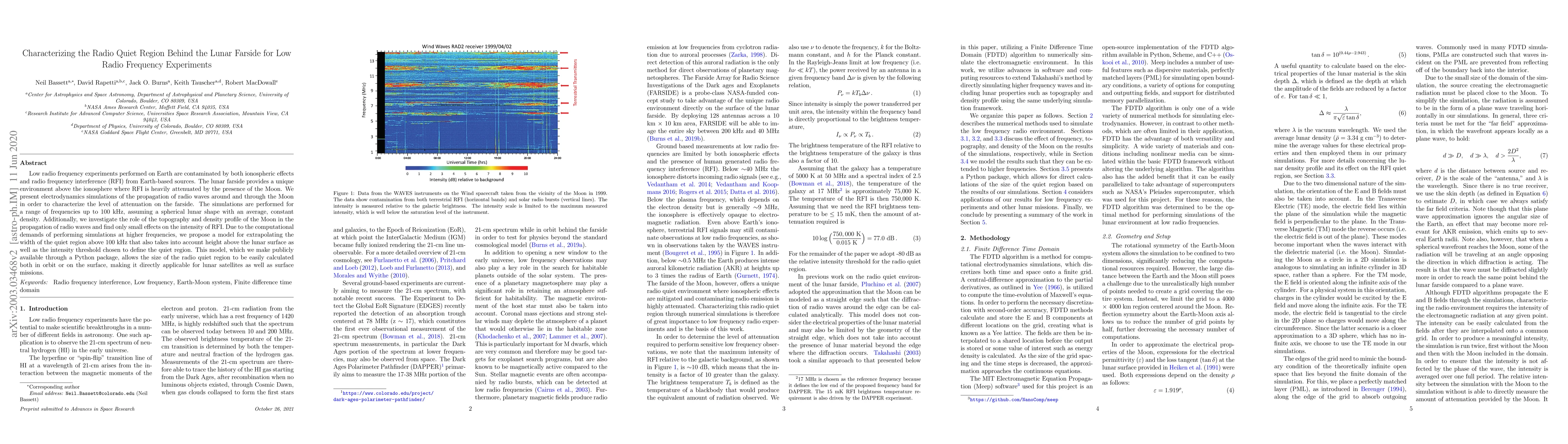Low radio frequency experiments performed on Earth are contaminated by both ionospheric effects and radio frequency interference (RFI) from Earth-based sources. The lunar farside provides a unique environment above the ionosphere where RFI is heavily attenuated by the presence of the Moon. We present electrodynamics simulations of the propagation of radio waves around and through the Moon in order to characterize the level of attenuation on the farside. The simulations are performed for a range of frequencies up to 100 kHz, assuming a spherical lunar shape with an average, constant density. Additionally, we investigate the role of the topography and density profile of the Moon in the propagation of radio waves and find only small effects on the intensity of RFI. Due to the computational demands of performing simulations at higher frequencies, we propose a model for extrapolating the width of the quiet region above 100 kHz that also takes into account height above the lunar surface as well as the intensity threshold chosen to define the quiet region. This model, which we make publicly available through a Python package, allows the size of the radio quiet region to be easily calculated both in orbit or on the surface, making it directly applicable for lunar satellites as well as surface missions.