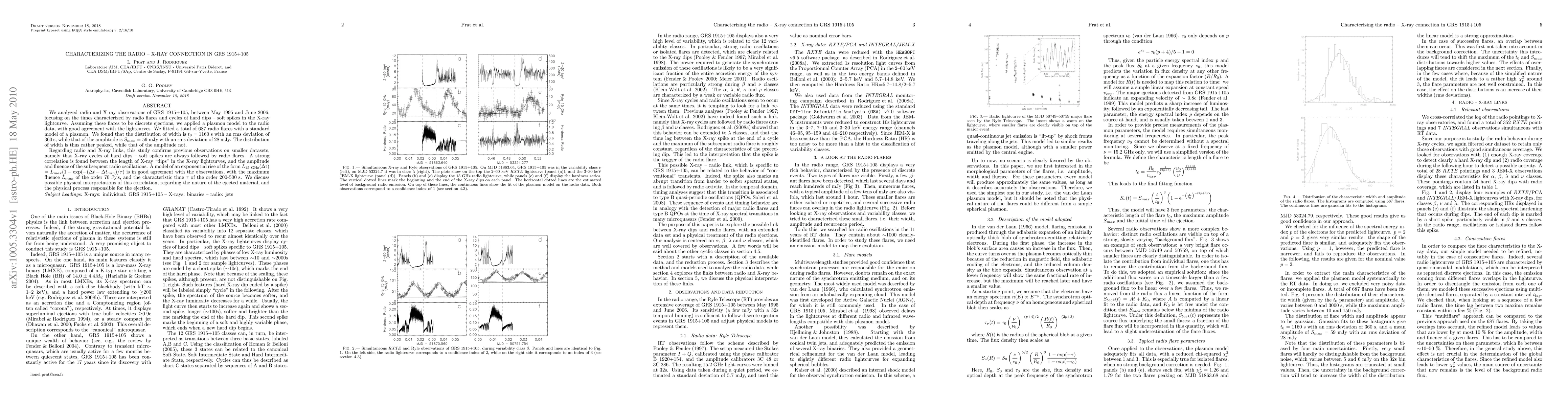 The study analyzed radio and X-ray observations of GRS 1915+105, confirming a strong correlation between X-ray cycles and radio flares, with the length of X-ray dips correlating with amplitude and fluence of subsequent radio oscillations.