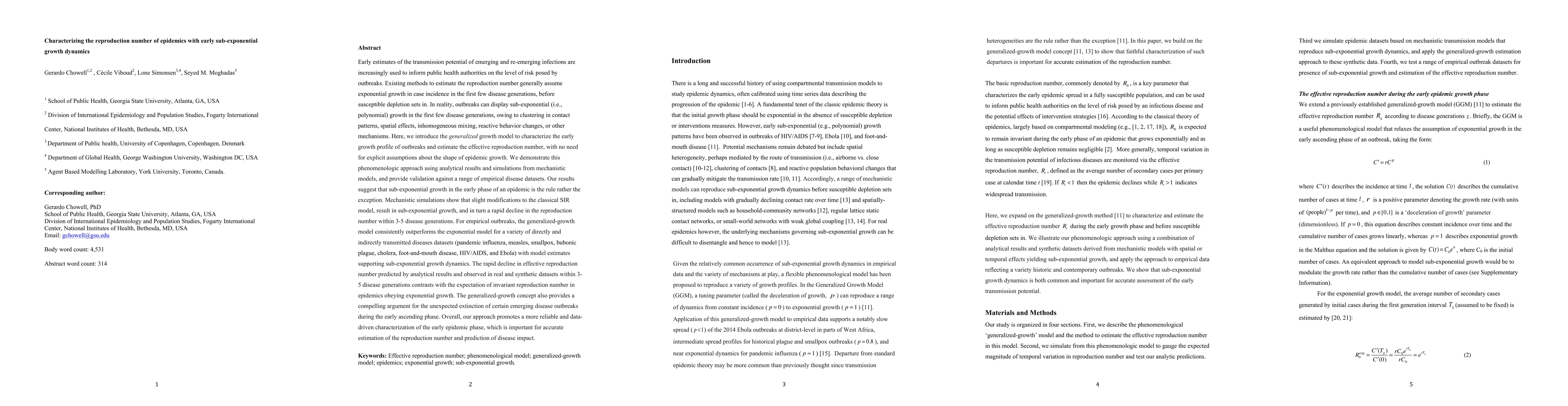 This paper introduces a generalized growth model to estimate the reproduction number of epidemics that exhibit early sub-exponential growth dynamics, rather than the typical exponential growth assumption. The model outperforms traditional methods by providing a more accurate characterization of the early epidemic phase, leading to better predictions of disease impact.