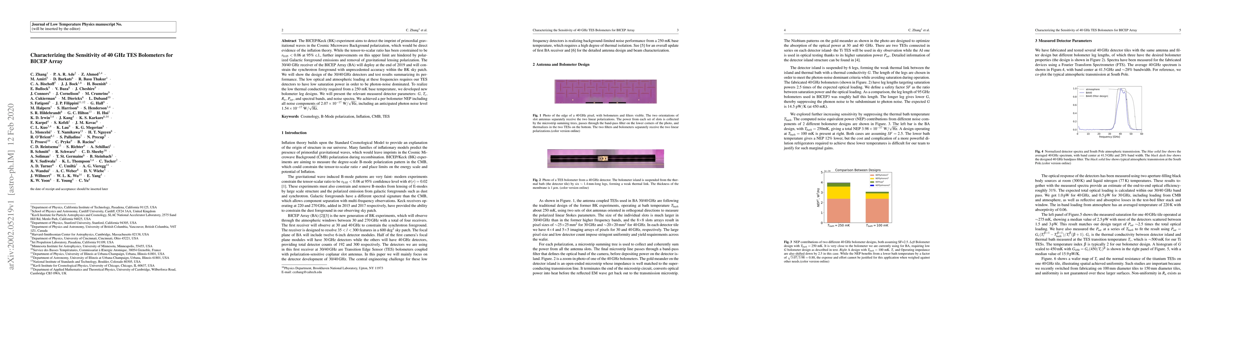 This research paper focuses on improving the BICEP Array's sensitivity to primordial gravitational waves by developing new 40 GHz TES bolometers with low saturation power and high thermal conductivity, achieving a noise equivalent power of 2.07E-17 W/sqrt(Hz).