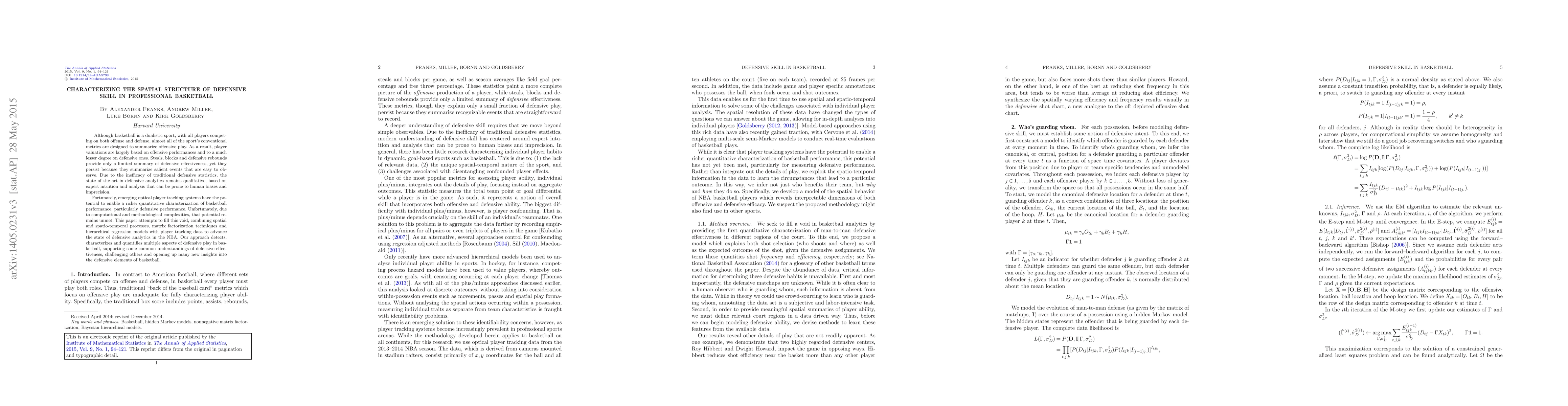 This paper develops advanced quantitative methods using player tracking data to better characterize defensive skills in professional basketball, moving beyond traditional metrics and revealing new insights into defensive performance. The proposed techniques integrate spatial and temporal data to provide a more nuanced understanding of defensive effectiveness.