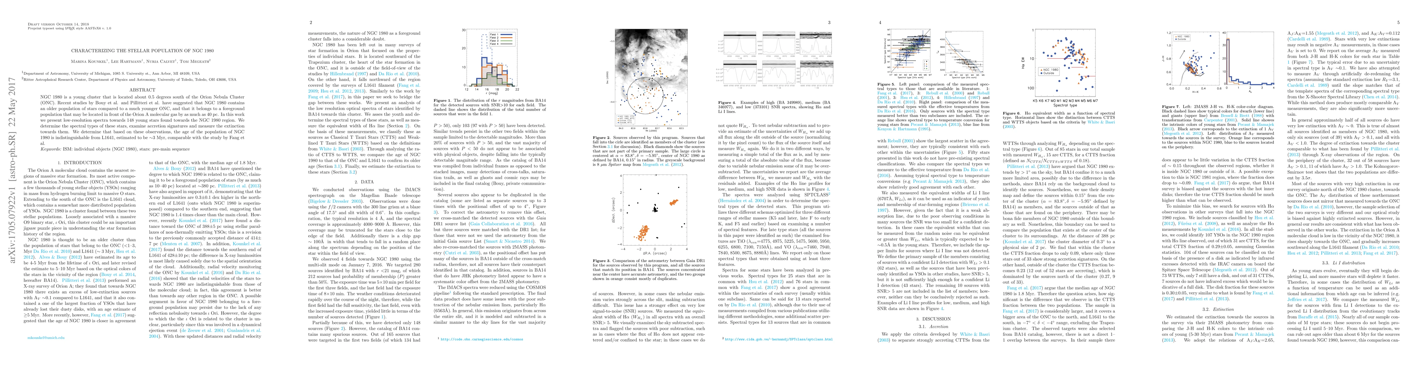 NGC 1980 is a young cluster that is located about 0.5 degrees south of the Orion Nebula Cluster (ONC). Recent studies by Bouy et al. and Pillitteri et al. have suggested that NGC 1980 contains an older population of stars compared to a much younger ONC, and that it belongs to a foreground population that may be located in front of the Orion A molecular gas by as much as 40 pc. In this work we present low-resolution spectra towards 148 young stars found towards the NGC 1980 region. We determine the spectral types of these stars, examine accretion signatures and measure the extinction towards them. We determine that based on these observations, the age of the population of NGC 1980 is indistinguishable from L1641, estimated to be ~3 Myr, comparable with the study by Fang et al.