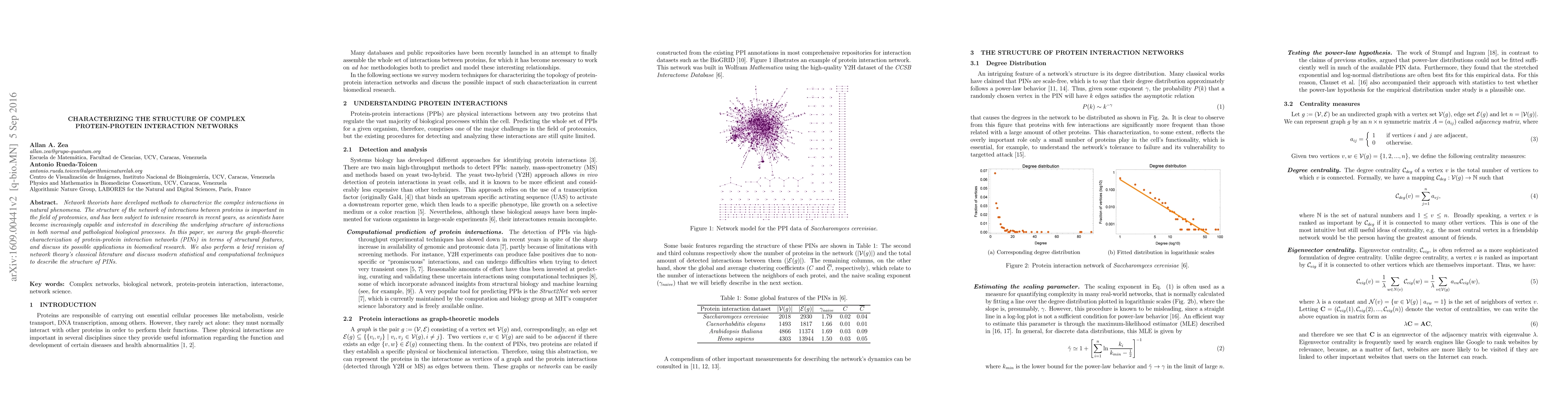 Network theorists have developed methods to characterize the complex interactions in natural phenomena. The structure of the network of interactions between proteins is important in the field of proteomics, and has been subject to intensive research in recent years, as scientists have become increasingly capable and interested in describing the underlying structure of interactions in both normal and pathological biological processes. In this paper, we survey the graph-theoretic characterization of protein-protein interaction networks (PINs) in terms of structural features, and discuss its possible applications in biomedical research. We also perform a brief revision of network theory's classical literature and discuss modern statistical and computational techniques to describe the structure of PINs