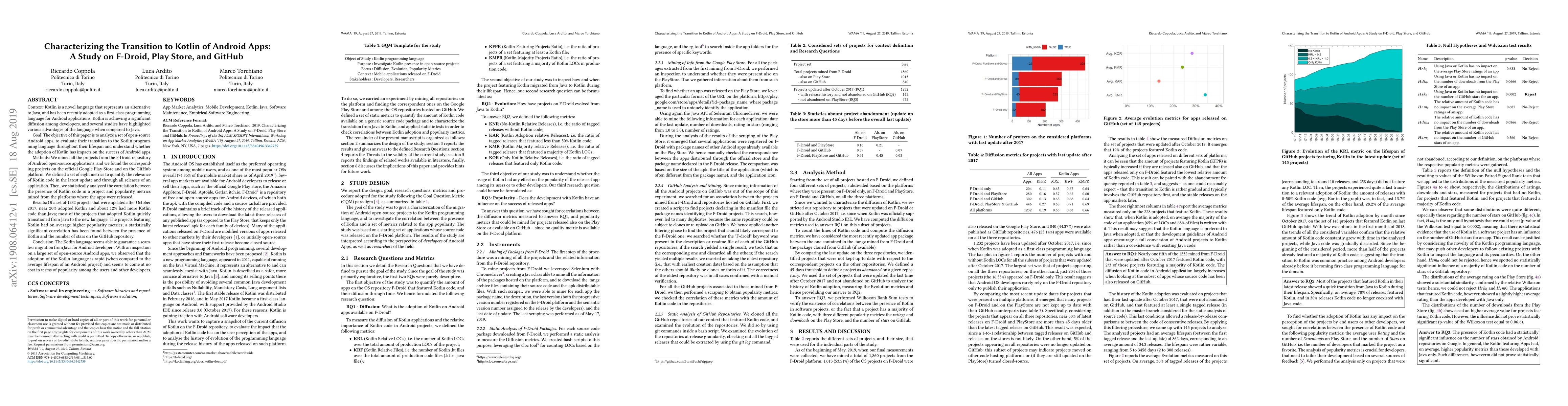 This study analyzes the transition of Android apps to Kotlin, finding that nearly 20% of open-source projects on F-Droid, Play Store, and GitHub have adopted Kotlin. Projects featuring Kotlin showed higher popularity metrics, indicating a positive correlation between Kotlin adoption and user engagement.