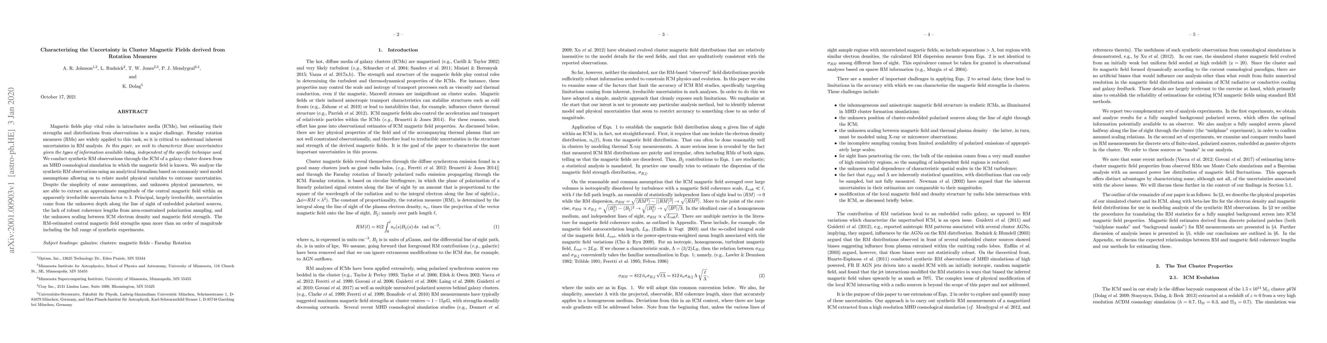 This research characterizes uncertainties in estimating intracluster magnetic fields using Faraday rotation measures (RMs). By conducting synthetic RM observations from a known magnetic field MHD cosmological simulation, the study finds that principal uncertainties stem from unknown polarized source depths, lack of coherence lengths, and the unknown relationship between ICM electron density and magnetic field strength. The analysis reveals that RM-estimated central magnetic field strengths can span over an order of magnitude, with an approximate irreducible uncertainty factor of 3.