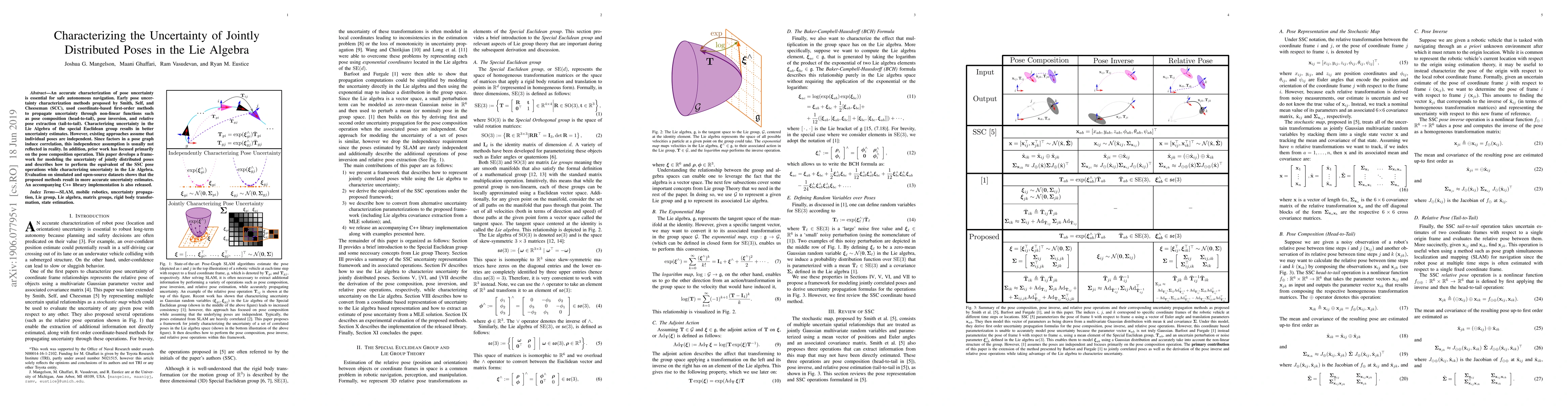 This paper presents a novel framework for accurately characterizing uncertainty in jointly distributed poses within the Lie Algebra of the special Euclidean group, addressing limitations of prior coordinate-based methods. Evaluation demonstrates improved uncertainty estimation on simulated and real-world datasets, with a released C++ library implementation.