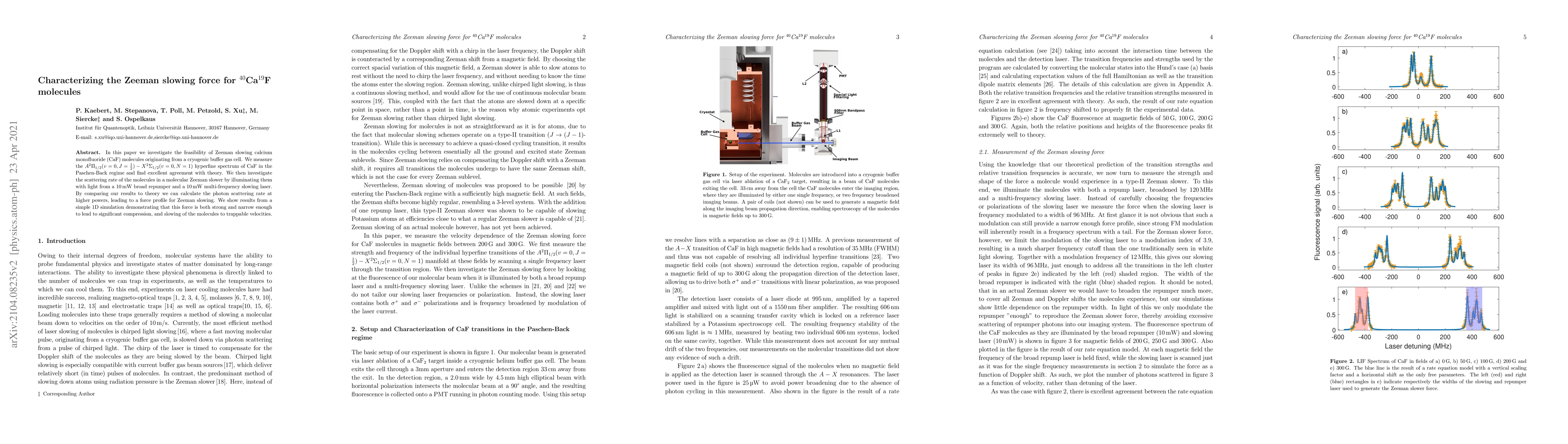 In this paper we investigate the feasibility of Zeeman slowing calcium monofluoride (CaF) molecules originating from a cryogenic buffer gas cell. We measure the $A^2\Pi_{1/2} (v=0, J=\frac{1}{2}) - X^2\Sigma_{1/2} (v=0, N=1)$ hyperfine spectrum of CaF in the Paschen-Back regime and find excellent agreement with theory. We then investigate the scattering rate of the molecules in a molecular Zeeman slower by illuminating them with light from a 10mW broad repumper and a 10mW multi-frequency slowing laser. By comparing our results to theory we can calculate the photon scattering rate at higher powers, leading to a force profile for Zeeman slowing. We show results from a simple 1D simulation demonstrating that this force is both strong and narrow enough to lead to significant compression, and slowing of the molecules to trappable velocities.