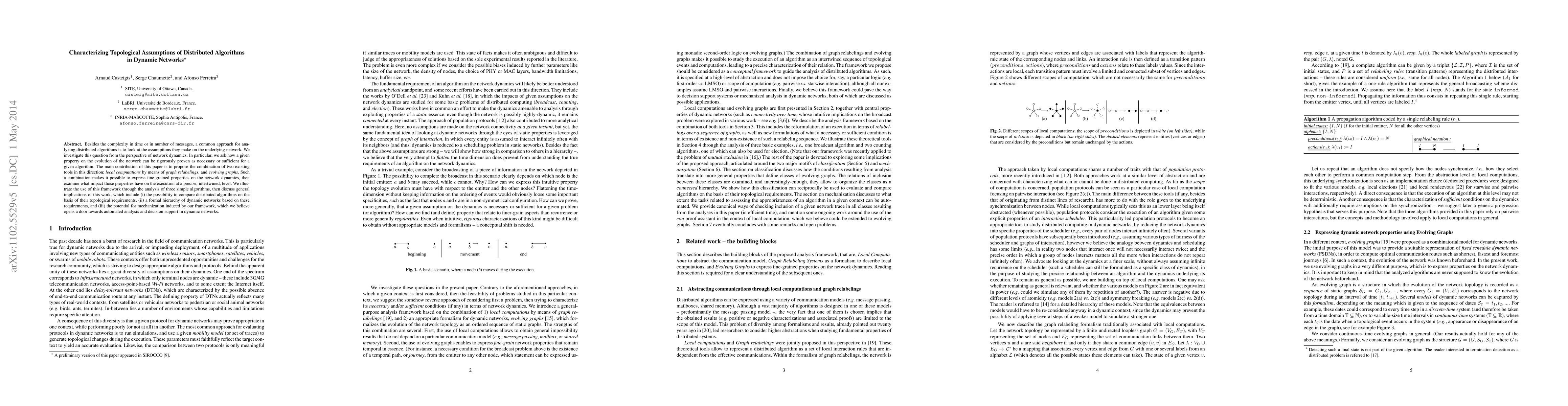Besides the complexity in time or in number of messages, a common approach for analyzing distributed algorithms is to look at the assumptions they make on the underlying network. We investigate this question from the perspective of network dynamics. In particular, we ask how a given property on the evolution of the network can be rigorously proven as necessary or sufficient for a given algorithm. The main contribution of this paper is to propose the combination of two existing tools in this direction: local computations by means of graph relabelings, and evolving graphs. Such a combination makes it possible to express fine-grained properties on the network dynamics, then examine what impact those properties have on the execution at a precise, intertwined, level. We illustrate the use of this framework through the analysis of three simple algorithms, then discuss general implications of this work, which include (i) the possibility to compare distributed algorithms on the basis of their topological requirements, (ii) a formal hierarchy of dynamic networks based on these requirements, and (iii) the potential for mechanization induced by our framework, which we believe opens a door towards automated analysis and decision support in dynamic networks.
