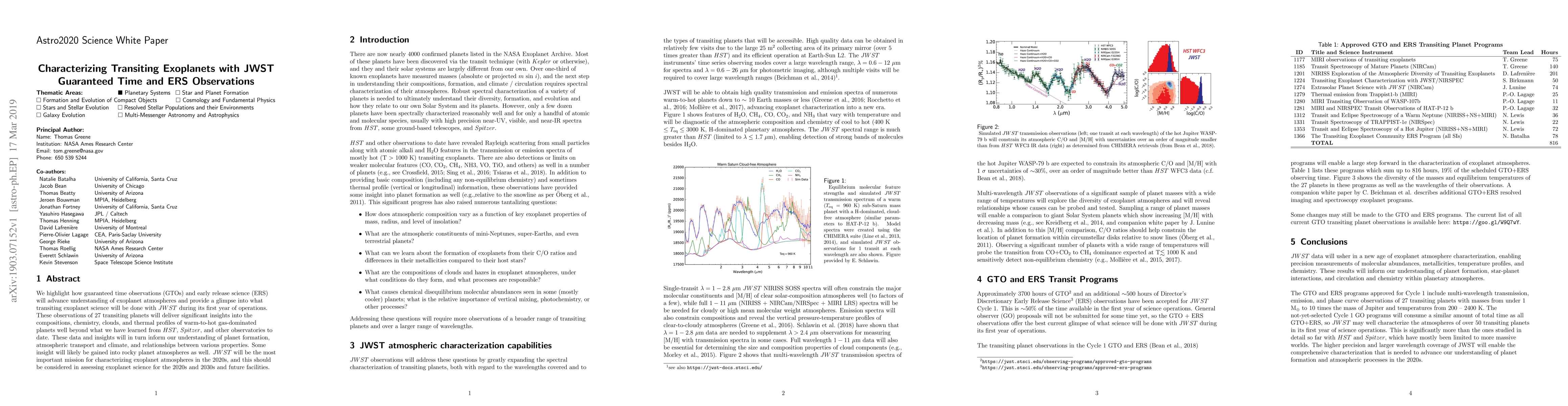 This paper discusses how JWST's guaranteed time observations and early release science will significantly advance our understanding of exoplanet atmospheres, providing detailed insights into the compositions and thermal profiles of transiting planets, and informing future studies on planet formation and climate. JWST is poised to be the leading mission in exoplanet characterization for the next two decades.