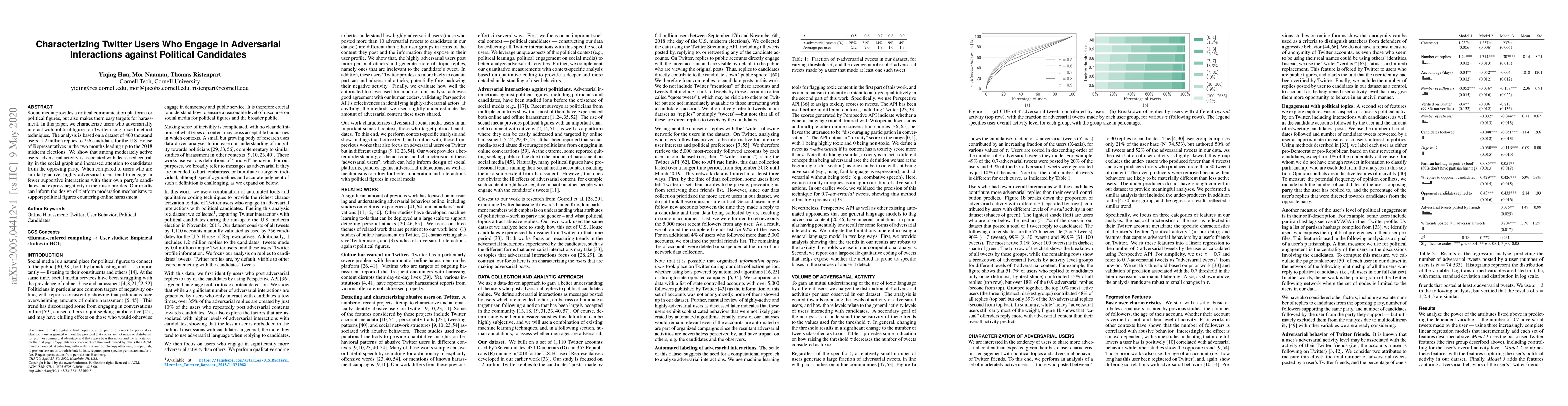 Social media provides a critical communication platform for political figures, but also makes them easy targets for harassment. In this paper, we characterize users who adversarially interact with political figures on Twitter using mixed-method techniques. The analysis is based on a dataset of 400~thousand users' 1.2~million replies to 756 candidates for the U.S. House of Representatives in the two months leading up to the 2018 midterm elections. We show that among moderately active users, adversarial activity is associated with decreased centrality in the social graph and increased attention to candidates from the opposing party. When compared to users who are similarly active, highly adversarial users tend to engage in fewer supportive interactions with their own party's candidates and express negativity in their user profiles. Our results can inform the design of platform moderation mechanisms to support political figures countering online harassment.