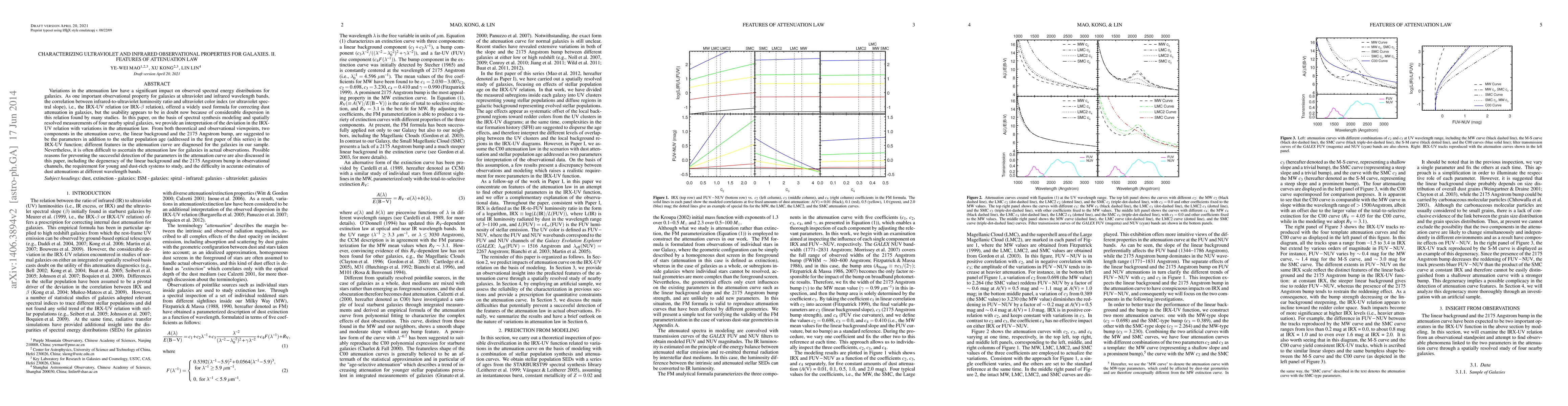 This paper investigates variations in the attenuation law affecting galaxies' spectral energy distributions, focusing on the IRX-UV relation's dispersion. It proposes that the linear background and the 2175 Angstrom bump in the attenuation curve, along with stellar population age, influence the IRX-UV function, complicating its usability for dust correction. Challenges in observational detection, such as parameter degeneracy and the need for young, dust-rich systems, are also discussed.
