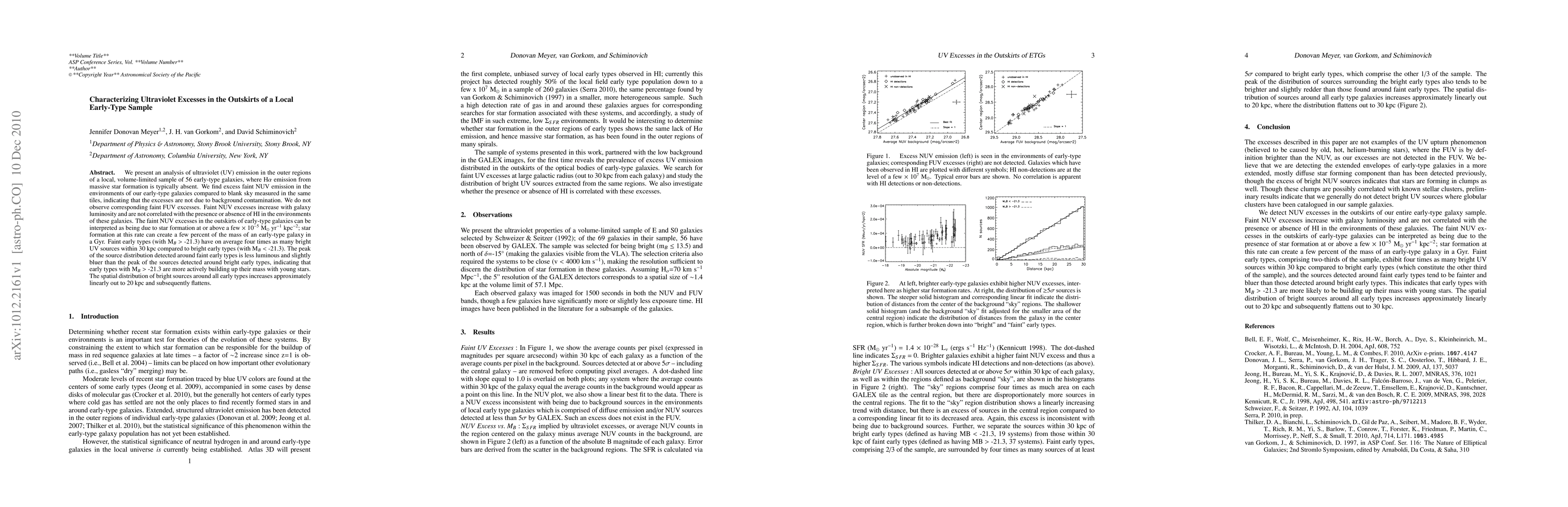 We present an analysis of ultraviolet (UV) emission in the outer regions of a local, volume-limited sample of 56 early-type galaxies, where H{\alpha} emission from massive star formation is typically absent. We find excess faint NUV emission in the environments of our early-type galaxies compared to blank sky measured in the same tiles, indicating that the excesses are not due to background contamination. We do not observe corresponding faint FUV excesses. Faint NUV excesses increase with galaxy luminosity and are not correlated with the presence or absence of HI in the environments of these galaxies. The faint NUV excesses in the outskirts of early-type galaxies can be interpreted as being due to star formation at or above a few \times 10-5 M\odot yr-1 kpc-2; star formation at this rate can create a few percent of the mass of an early-type galaxy in a Gyr. Faint early types (with MB > -21.3) have on average four times as many bright UV sources within 30 kpc compared to bright early types (with MB < -21.3). The peak of the source distribution detected around faint early types is less luminous and slightly bluer than the peak of the sources detected around bright early types, indicating that early types with MB > -21.3 are more actively building up their mass with young stars. The spatial distribution of bright sources around all early types increases approximately linearly out to 20 kpc and subsequently flattens.