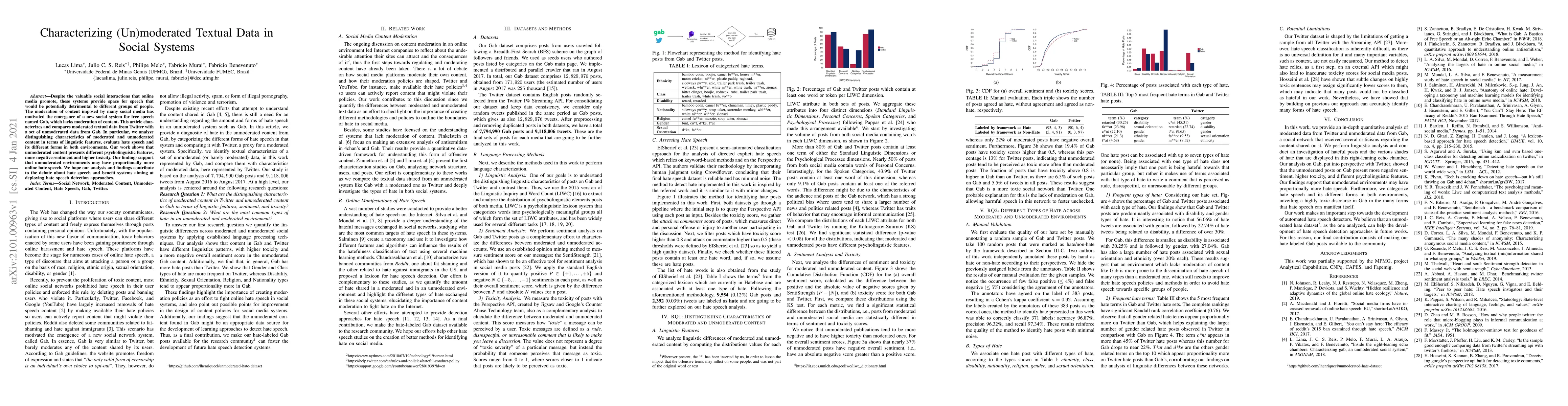 This paper compares moderated content from Twitter to unmoderated content from Gab, finding that unmoderated environments exhibit more negative sentiment, higher toxicity, and proportionally more hate speech, highlighting the need for effective hate speech detection in such systems.