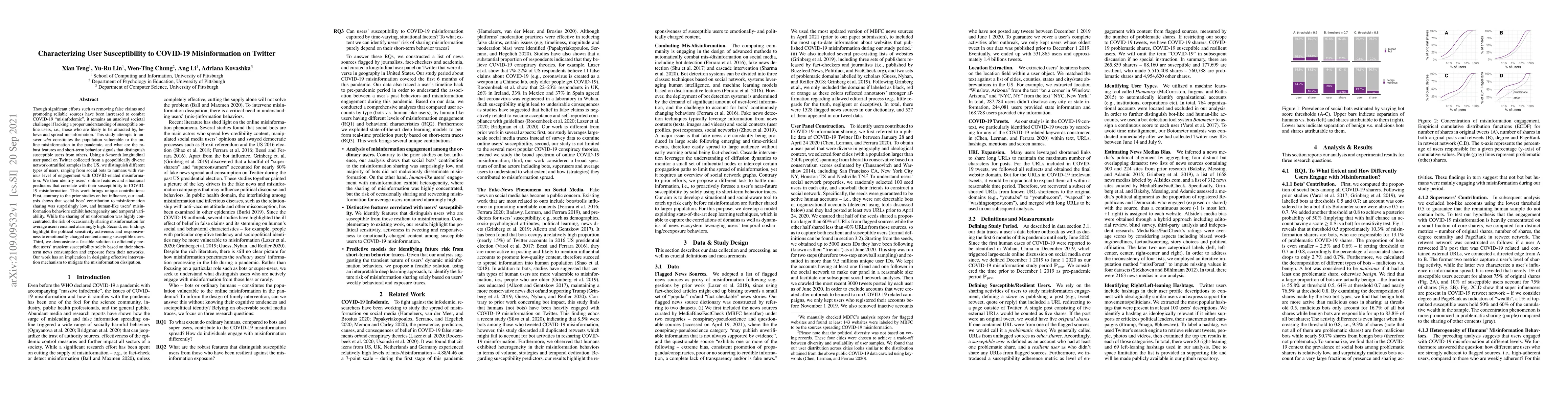 This study characterizes users susceptible to COVID-19 misinformation on Twitter, revealing that human-like users, not social bots, predominantly spread misinformation. It highlights political sensitivity and emotional responsiveness among susceptible users, and proposes a method to predict transient susceptibility based on short-term online behavior.
