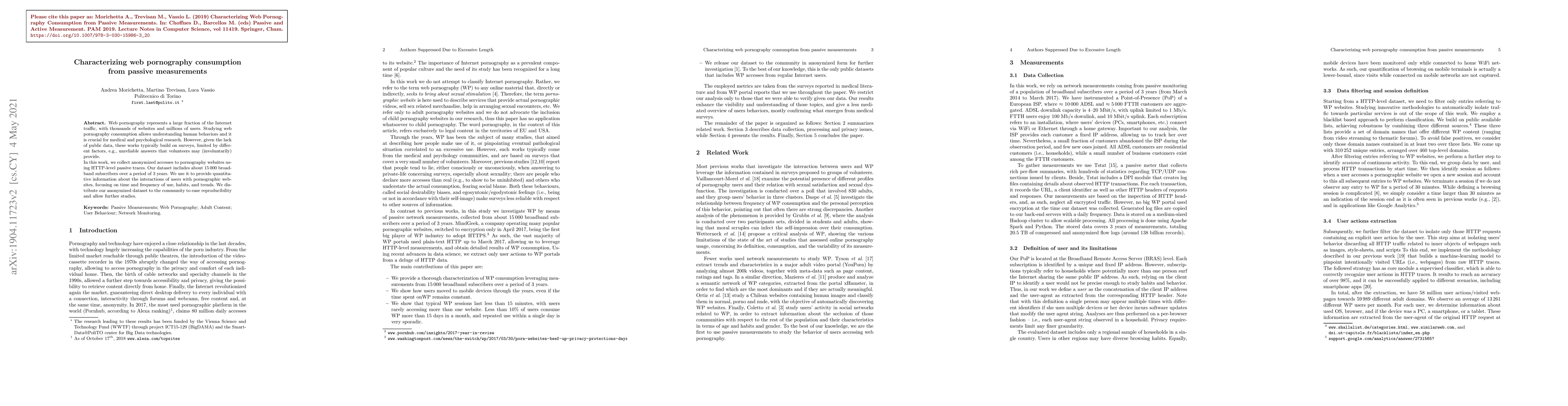 This study characterizes web pornography consumption through anonymized HTTP-level passive traces from 15,000 broadband subscribers over three years, providing insights into usage patterns and trends, and aims to facilitate further research by distributing the dataset.