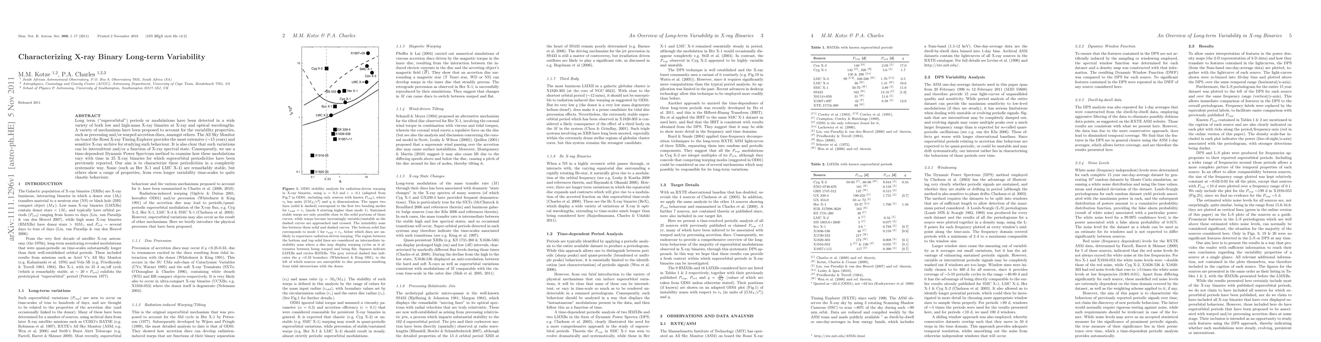 Long-term ("superorbital") periods or modulations have been detected in a wide variety of both low and high-mass X-ray binaries at X-ray and optical wavelengths. A variety of mechanisms have been proposed to account for the variability properties, such as precessing and/or warped accretion discs, amongst others. The All Sky Monitor on board the Rossi X-ray Timing Explorer provides the most extensive (~15 years) and sensitive X-ray archive for studying such behaviour. It is also clear that such variations can be intermittent and/or a function of X-ray spectral state. Consequently, we use a time-dependent Dynamic Power Spectrum method to examine how these modulations vary with time in 25 X-ray binaries for which superorbital periodicities have been previously reported. Our aim is to characterize these periodicities in a completely systematic way. Some (such as Her X-1 and LMC X-4) are remarkably stable, but others show a range of properties, from even longer variability time-scales to quite chaotic behaviour.