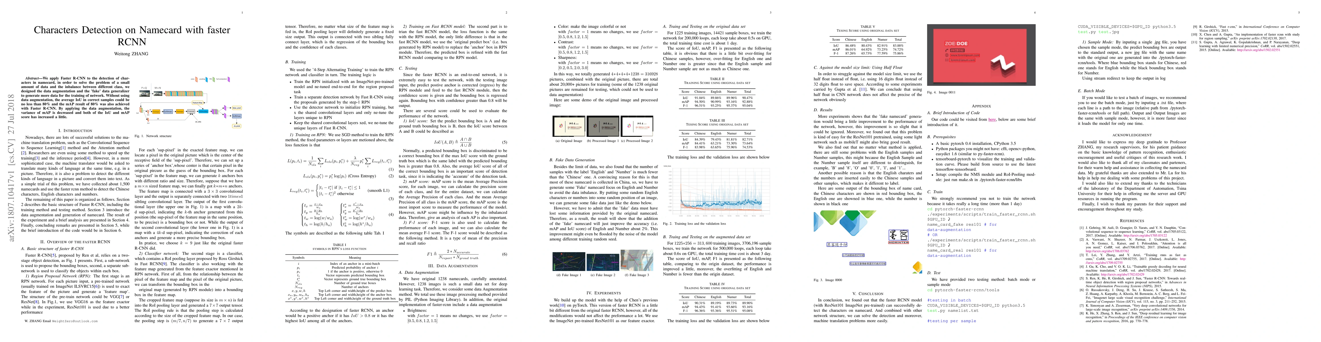Researchers used Faster R-CNN to detect characters on namecards, improving detection accuracy with data augmentation techniques.