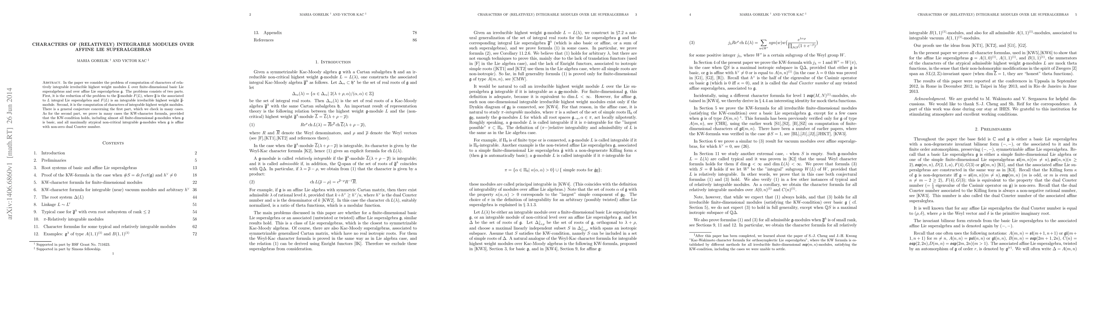 This paper explores the computation of characters for relatively integrable irreducible highest weight modules over finite-dimensional basic and affine Lie superalgebras. It reduces the problem to a related $\overline{\mathfrak{g}}$-module and verifies a general conjecture in many cases, proving the KW-character formula under specific conditions for various modules.