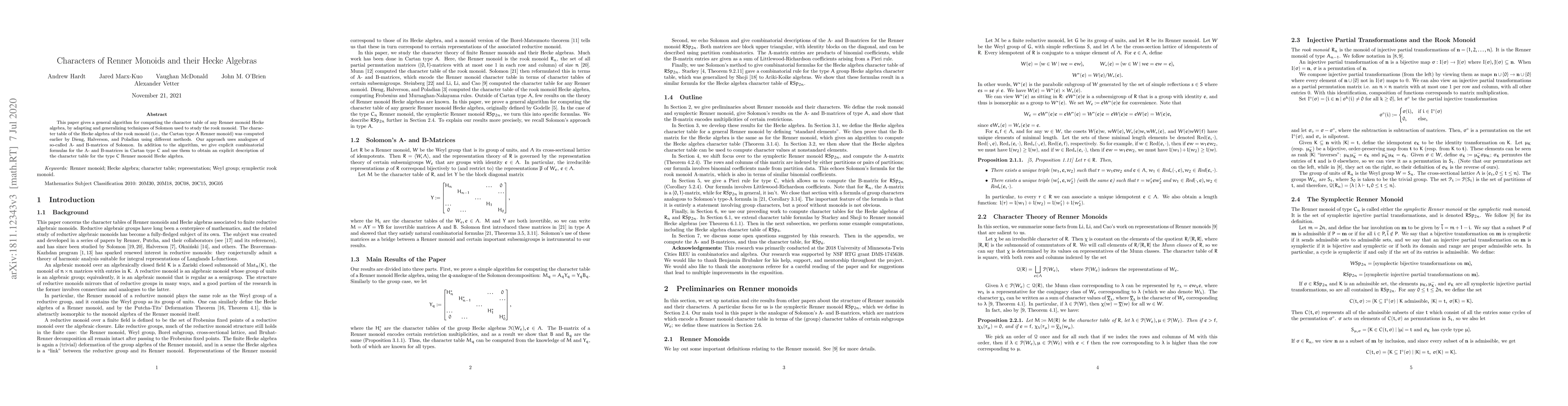 This paper gives a general algorithm for computing the character table of any Renner monoid Hecke algebra, by adapting and generalizing techniques of Solomon used to study the rook monoid. The character table of the Hecke algebra of the rook monoid (i.e., the Cartan type $A$ Renner monoid) was computed earlier by Dieng, Halverson, and Poladian using different methods. Our approach uses analogues of so-called A- and B-matrices of Solomon. In addition to the algorithm, we give explicit combinatorial formulas for the A- and B-matrices in Cartan type $C$ and use them to obtain an explicit description of the character table for the type $C$ Renner monoid Hecke algebra.