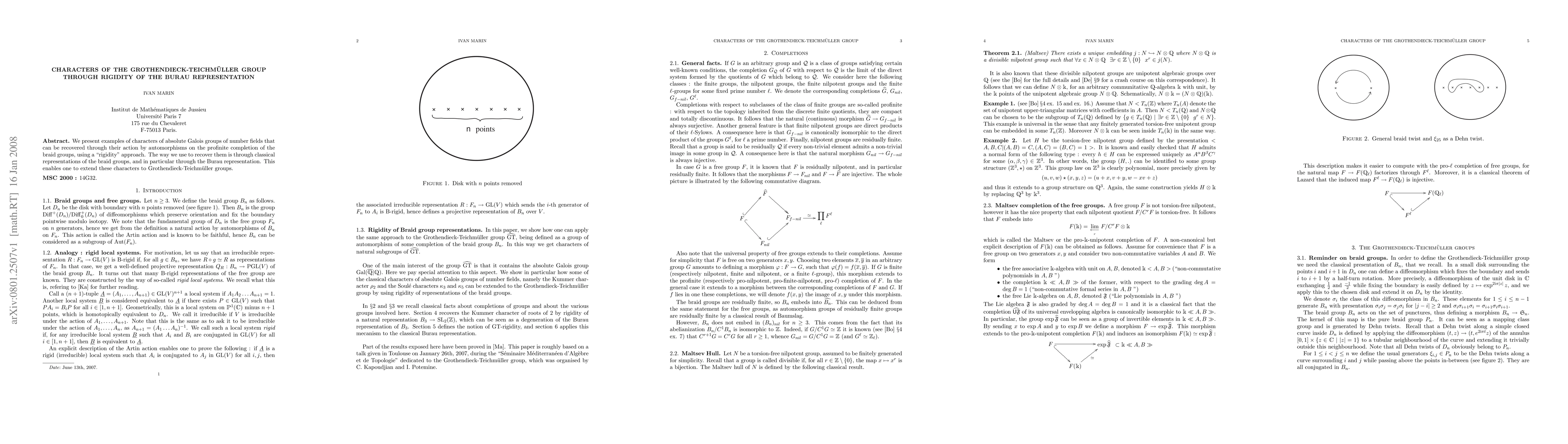 We present examples of characters of absolute Galois groups of number fields that can be recovered through their action by automorphisms on the profinite completion of the braid groups, using a ``rigidity'' approach. The way we use to recover them is through classical representations of the braid groups, and in particular through the Burau representation. This enables one to extend these characters to Grothendieck-Teichmueller groups.