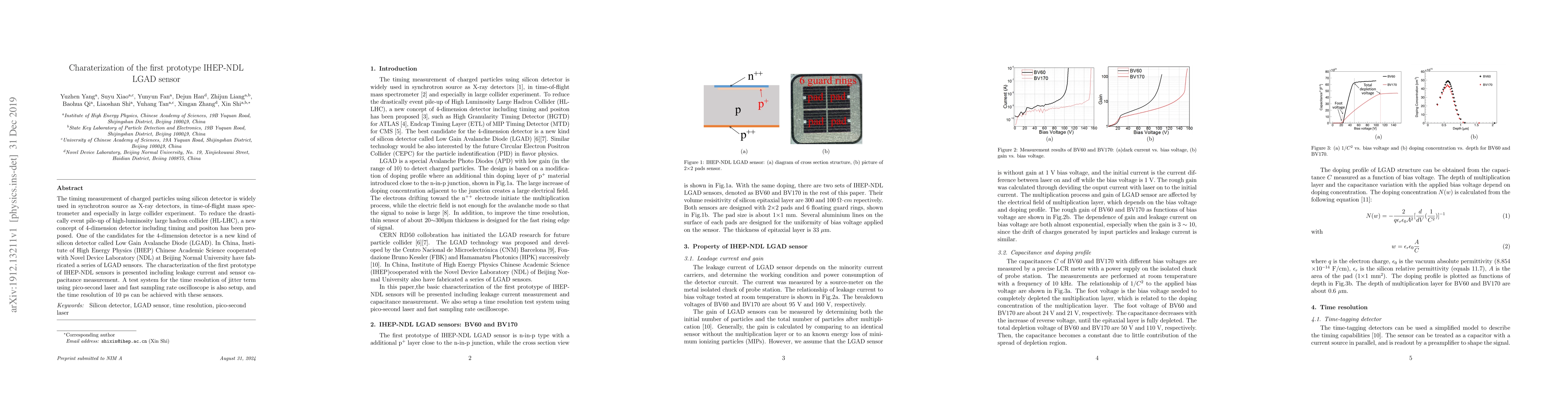 This paper characterizes the first prototype of IHEP-NDL LGAD sensors, focusing on leakage current, sensor capacitance, and time resolution. The sensors achieve a time resolution of 10 ps, demonstrating potential for high-luminosity collider experiments.