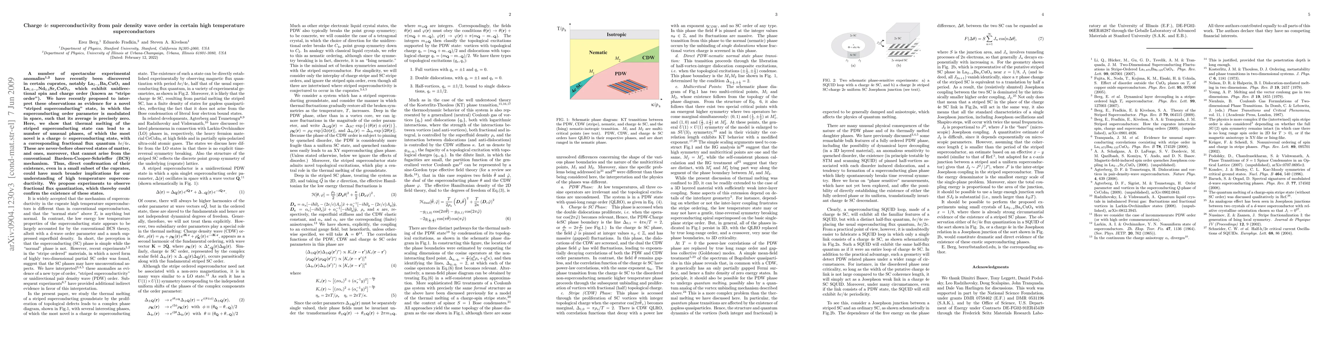 This paper proposes a novel "striped superconducting" state in certain high-temperature superconductors, characterized by a charge $4e$ superconducting phase with fractional flux quantum $hc/4e$, which cannot arise from conventional BCS mechanisms. Experiments to observe fractional flux quantization are suggested to confirm these unprecedented states.