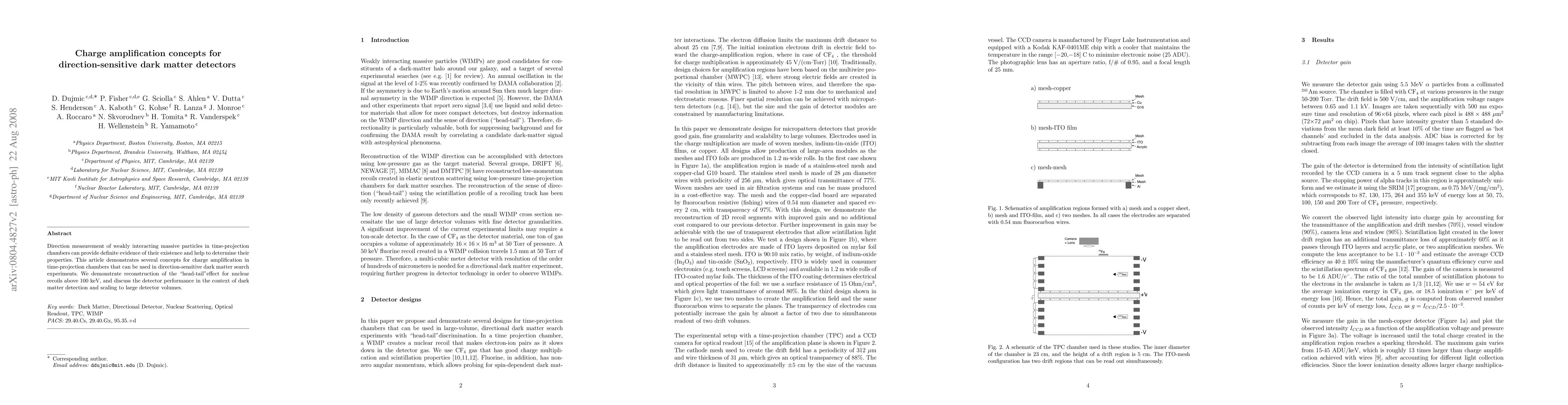 Direction measurement of weakly interacting massive particles in time-projection chambers can provide definite evidence of their existence and help to determine their properties. This article demonstrates several concepts for charge amplification in time-projection chambers that can be used in direction-sensitive dark matter search experiments. We demonstrate reconstruction of the 'head-tail' effect for nuclear recoils above 100keV, and discuss the detector performance in the context of dark matter detection and scaling to large detector volumes.