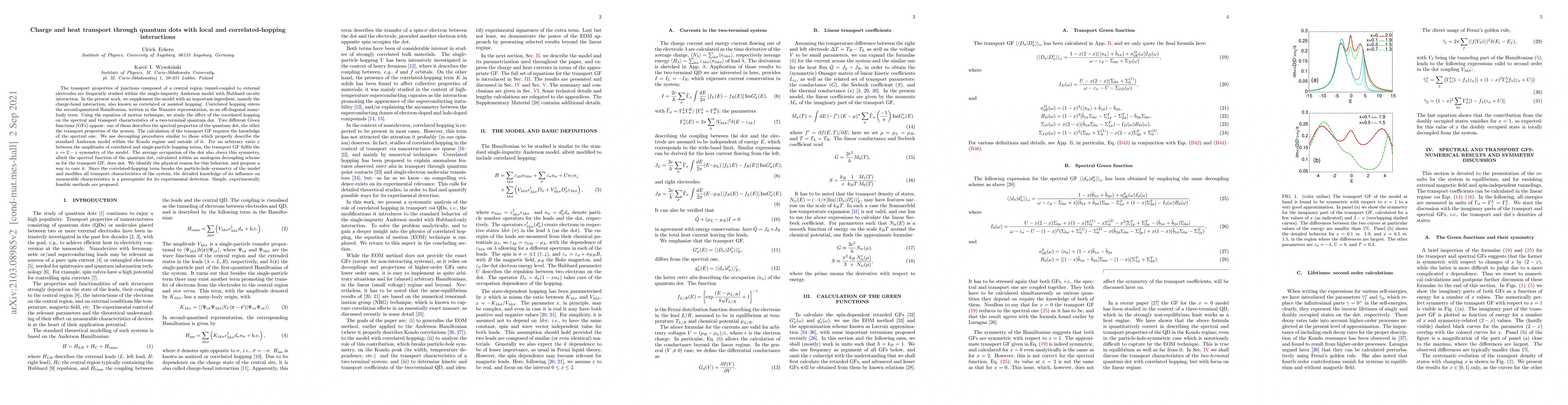 The transport properties of junctions composed of a central region tunnel-coupled to external electrodes are frequently studied within the single-impurity Anderson model with Hubbard on-site interaction. In the present work, we supplement the model with an important ingredient, namely the charge-bond interaction, also known as correlated or assisted hopping. Correlated hopping enters the second-quantised Hamiltonian, written in the Wannier representation, as an off-diagonal many-body term. Using the equation of motion technique, we study the effect of the correlated hopping on the spectral and transport characteristics of a two-terminal quantum dot. Two different Green functions (GFs) appear: one of them describes the spectral properties of the quantum dot, the other the transport properties of the system. The calculation of the transport GF requires the knowledge of the spectral one. We use decoupling procedures similar to those which properly describe the standard Anderson model within the Kondo regime and outside of it. For an arbitrary ratio $x$ between the amplitudes of correlated and single-particle hopping terms, the transport GF fulfils the $x \leftrightarrow 2-x$ symmetry of the model. The average occupation of the dot also obeys this symmetry, albeit the spectral function of the quantum dot, calculated within an analogous decoupling scheme as for the transport GF, does not. We identify the physical reason for this behavior, and propose a way to cure it. Since the correlated-hopping term breaks the particle-hole symmetry of the model and modifies all transport characteristics of the system, the detailed knowledge of its influence on measurable characteristics is a prerequisite for its experimental detection. Simple, experimentally feasible methods are proposed.