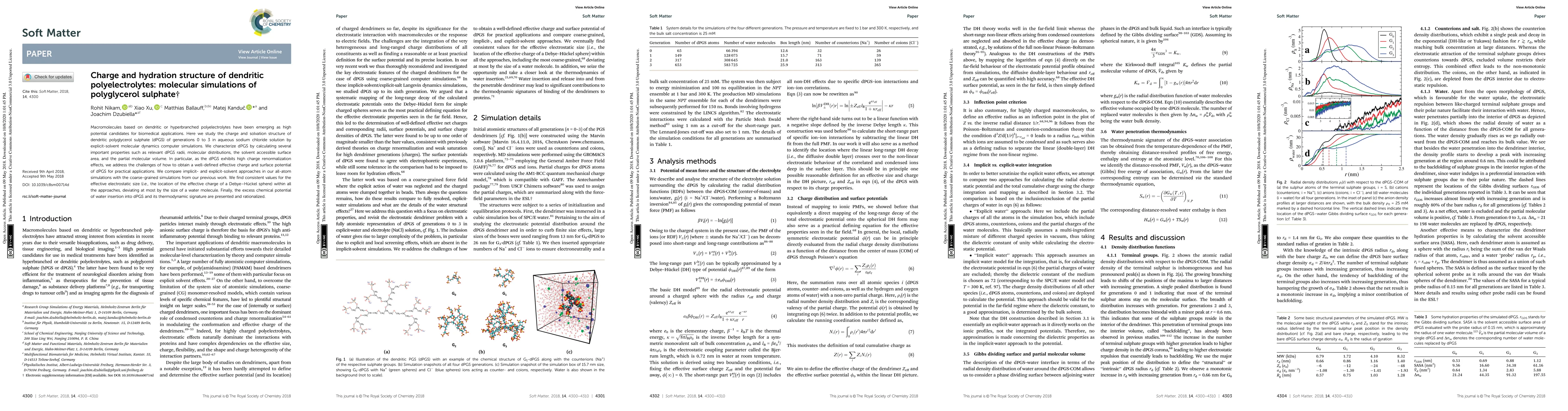This paper investigates the charge and hydration structure of dendritic polyglycerol sulphate (dPGS) using explicit-solvent molecular dynamics simulations, focusing on charge renormalization effects and effective electrostatic size. The study compares explicit and implicit solvent models, finding consistent electrostatic size values, and discusses the thermodynamic implications of water insertion into dPGS.