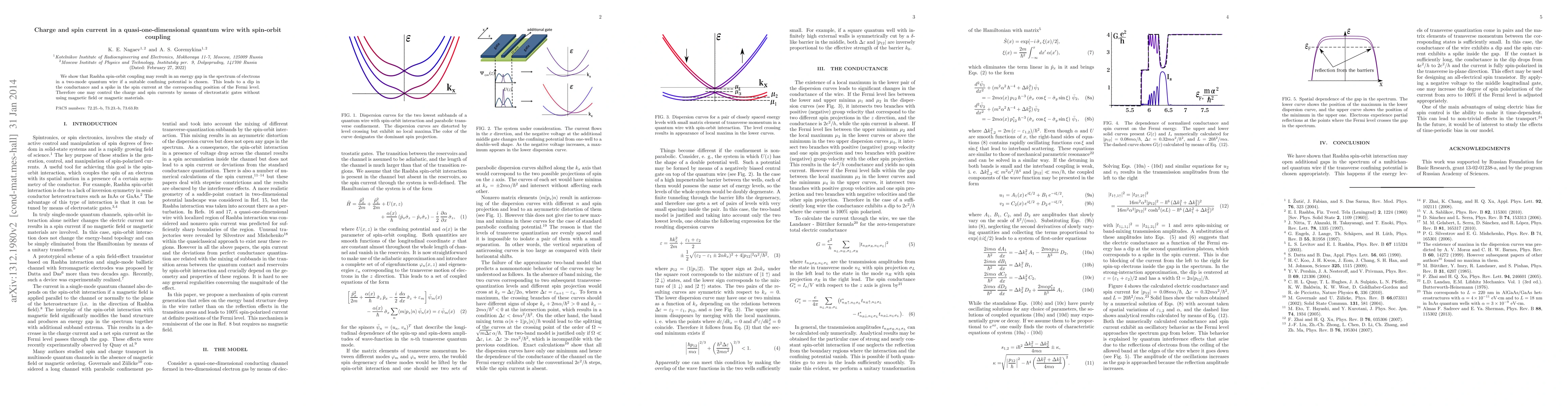 Summary: The study demonstrates that Rashba spin-orbit coupling can create an energy gap in a quasi-one-dimensional quantum wire, resulting in a dip in conductance and a spike in spin current. This allows for the control of charge and spin currents via electrostatic gates, without requiring magnetic fields or materials.