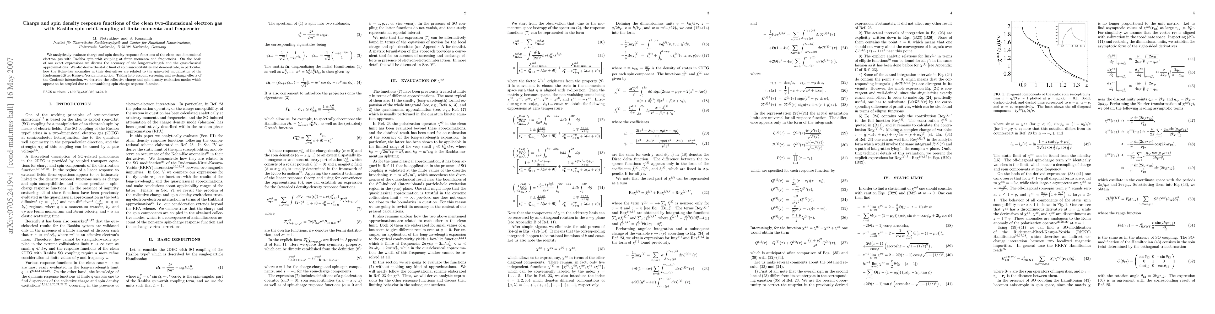This paper analytically evaluates charge and spin density response functions for a clean two-dimensional electron gas with Rashba spin-orbit coupling, examining their accuracy at finite momenta and frequencies. It highlights the coupling of collective charge and spin density excitation modes and discusses Kohn-like anomalies related to spin-orbit interactions.