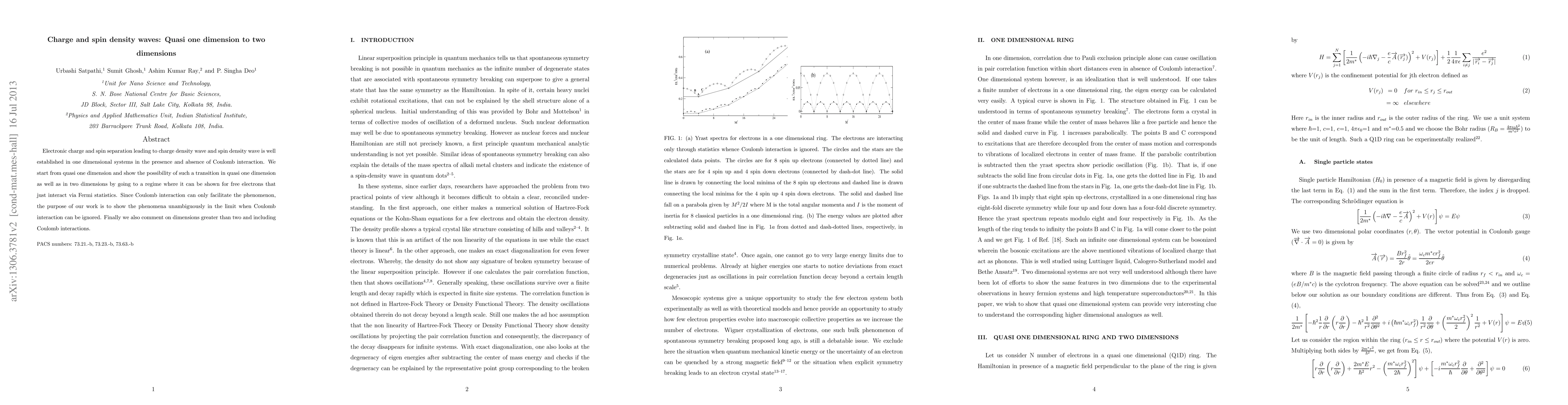 This paper explores the emergence of charge and spin density waves in quasi one-dimensional and two-dimensional systems, demonstrating the phenomena without reliance on Coulomb interaction, focusing on the role of Fermi statistics. The study also briefly discusses implications for higher dimensions and the effects of Coulomb interactions.